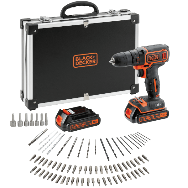 BLACK&DECKER AKKUS FÚRÓ/CSAVAROZÓ 18V, 2DB AKKU+ 80 RÉSZES SZETT BDCDC18BAFC