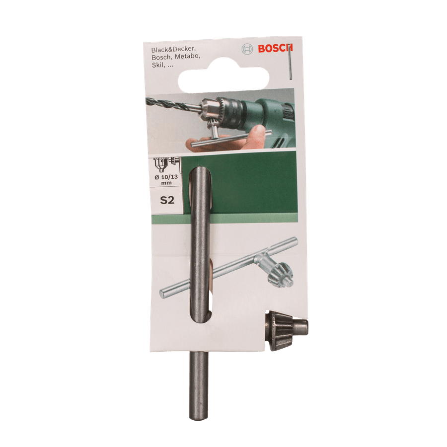 Bosch tokmánykulcs fúrógépekhez. A tokmánykulcs segítségével pontosan, gyorsan és egyszerűen rögzíthető a fúrószár vagy csavarbehajtó a fúrótokmányban. Biztosan tartja a szerszámot, míg a tokmány egyszerűen beállítható és meghúzható. Átmérő: 10/13 mm.