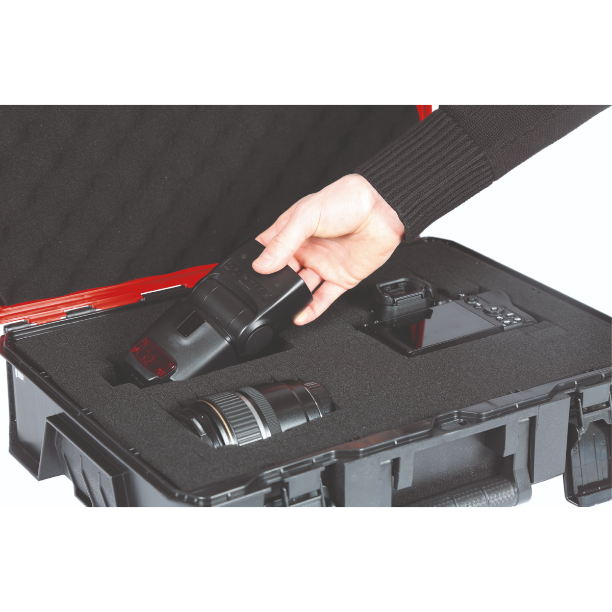 A habszivacs betéttel személyre szabott védelmet adhatsz az E-Case rendszerkoffered tartalmának – különösen akkor, ha az eszközök épsége kiemelten fontos.