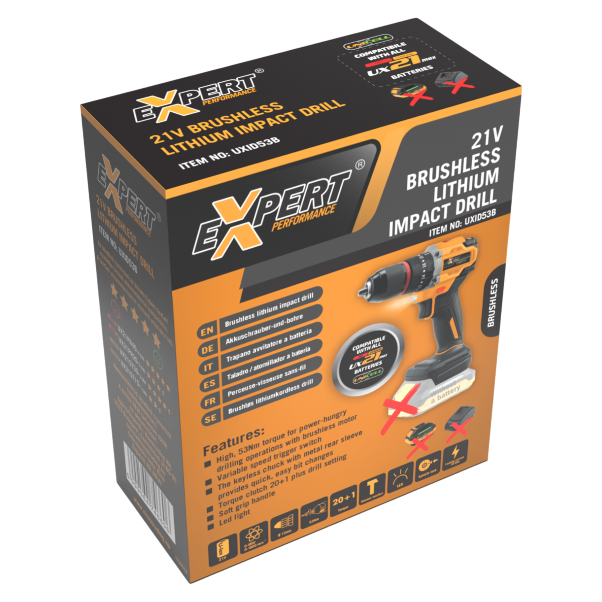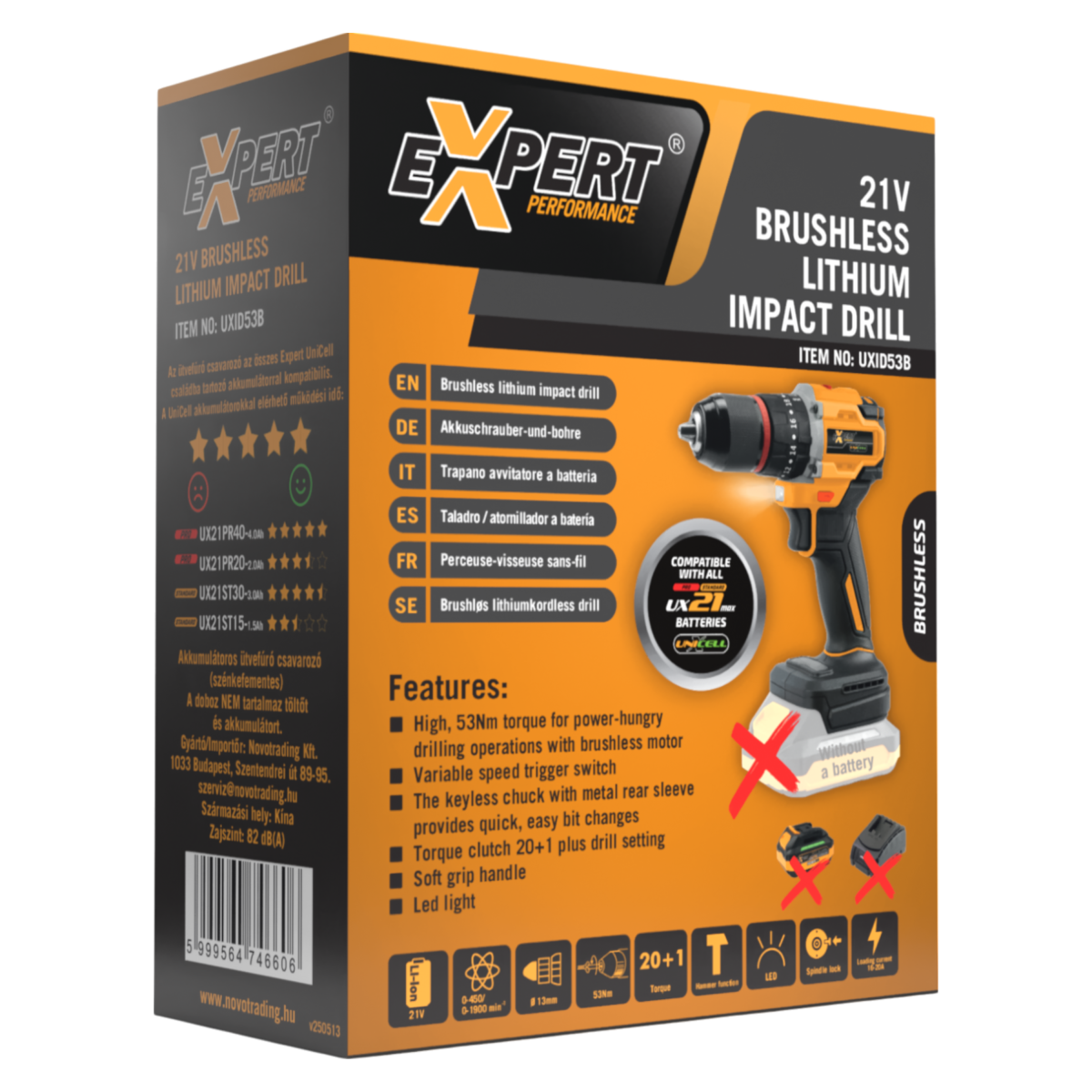 Expert UXID53B akkus ütvefúró csavarozó 21V akku és töltő nélkül