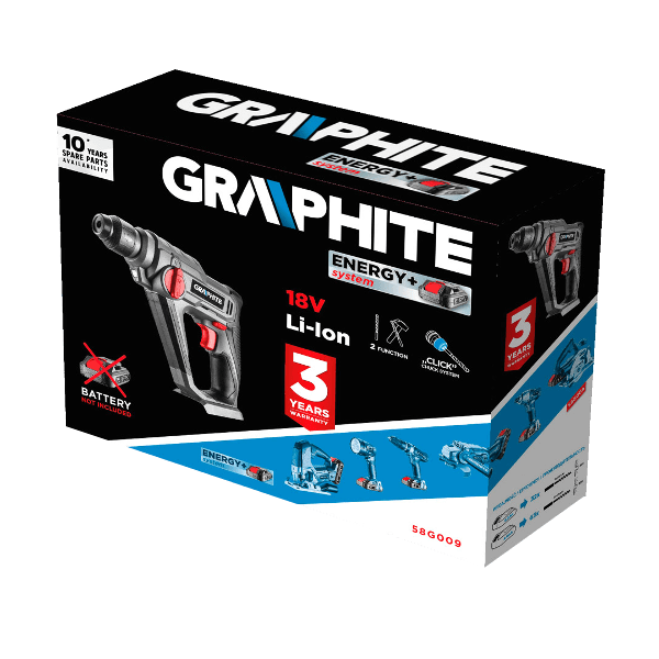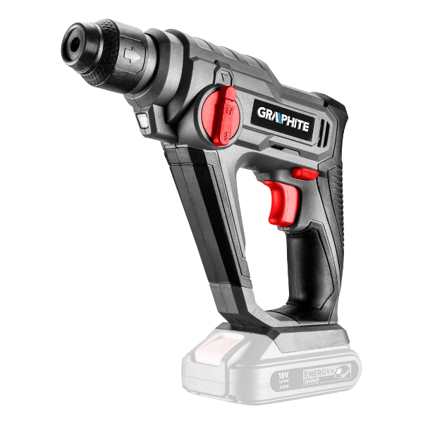 Akkus fúrókalapács SDS+ 18V, akkumulátor nélkül csomagolva, fordulatszáma 0-900 fordulat percenként, ütés 0-5000 fordulat percenként, jobbra/balra, ütési energia 0.8 J, 2-funkciós, fúrási átmérő beton/acél/fa 10/8/16 mm, kompatibilis az Energy+ akkumulátorokkal.A termékhez az akkumulátorokat az alábbi cikkszámokon tudja megvásárolni: 334819 és a 334822.