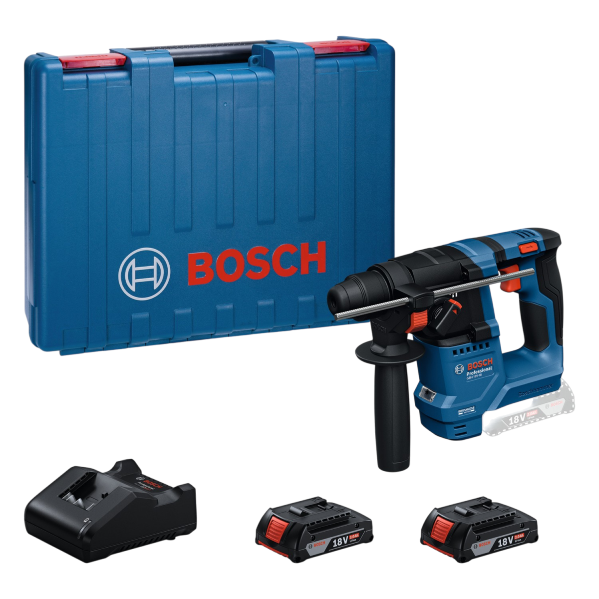 Bosch GBH 18V-18 1.5J akkus fúrókalapács, 2x18V 2.0Ah akkuval + töltővel kofferben