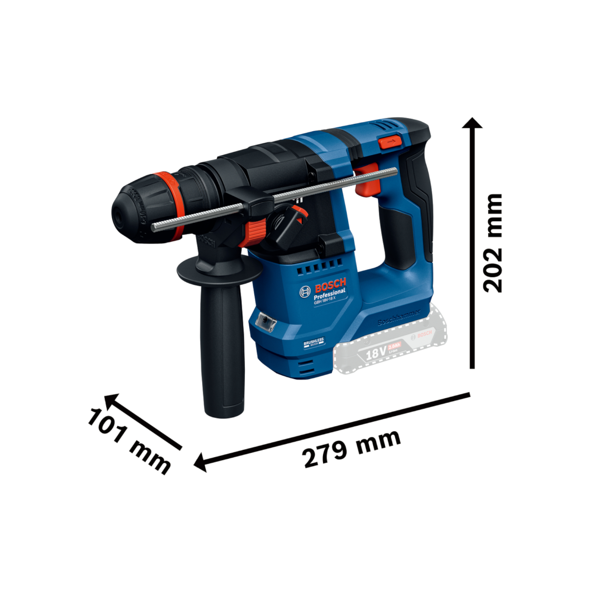A Bosch GBH 18V-18 egy könnyű, kompakt kialakítású akkus fúrókalapács, amely ideális választás, ha mobil, kényelmesen kezelhető, mégis erős szerszámra van szükséged. A kefementes motor stabil, állandó teljesítményt ad terhelés alatt is, a beépített rezgéscsillapítás pedig csökkenti a használat közbeni vibrációt, így kényelmesebbé és biztonságosabbá teszi a munkát. A visszajelzési védelem hirtelen szerszámforgás esetén automatikusan leállítja a motort, ami jelentősen növeli a felhasználó biztonságát. A készülék 18 V-os akkumulátorral használható – a csomag 2db 18V 2.0Ah akkumulátort és 1db töltőt tartalmaz.
