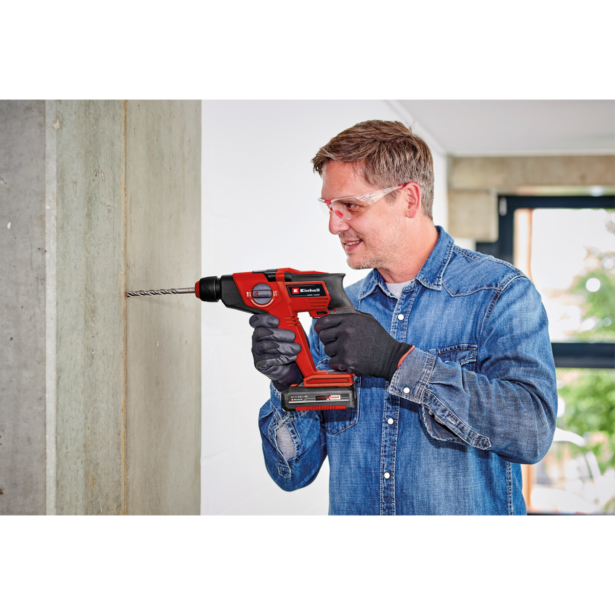 Az Einhell TE-HD 18/12 Li - Solo akkumulátoros ütvefúró a határtalan rugalmasságot biztosító Power X-Change rendszercsalád tagja, amelyhez a sorozat valamennyi akkumulátorát használhatja. Mindegy, hogy Ön kezdő felhasználó vagy tapasztalt ezermester: bármilyen anyagot kell megmunkálnia, az akkumulátoros fúrókalapács két alapfunkciójával nélkülözhetetlen segítőtársa lesz a fúrási és kalapácsfúrási munkák elvégzésében, a pneumatikus ütőszerkezetnek köszönhetően pedig könnyedén átfúrhatja az olyan ellenálló anyagokat is, mint például a beton. A nagy teljesítményű motor és a robusztus fém hajtómű nagy nyomatékot biztosít. A fordulatszám-szabályozó elektronika segítségével mindig az elvégzendő munka sajátosságaihoz igazíthatja a fordulatszámot. A készüléket univerzális SDS-Plus félautomata tokmánnyal szerelték fel. Az ergonomikus kialakítású és Softgrip borítású markolat erős és biztos tartást garantál, még nagyfokú igénybevétel esetén is. A munkaterület optimális megvilágítása érdekében az akkumulátoros fúrókalapácsot LED-világítással szerelték fel. A gyári csomagolás tartalmazza a csavarozóbit-adaptert. A készülék akkumulátor és töltőkészülék nélküli kivitelben érhető el. Ezeket külön – például egy praktikus kezdőcsomag formájában – vásárolhatja meg.