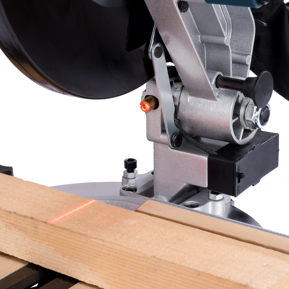 A termék porgyűjtő zsákkal, milliméteres méretskálák és fokonkénti beosztással, valamint a billenés ellen munkadarab tartóval rendelkezik.
