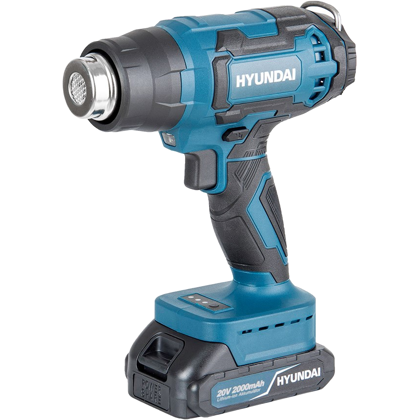 Hyundai HYD-602-20V akkumulátoros hőlégfúvó, tápfeszültség: 230V/50Hz, teljesítmény: 250W, levegőszállítás: 200L/perc, fokozatok száma: 3, fokozat hőmérséklete: 20/250/550Cº, fokozat fordulat: 500-650 L/perc, zajszint: Lpa:67dB/Lwa:58dB/K:1dB. kézreható vibráció: 2,7 m/s. A termék a következőkből áll: hőlégfúvó gép, akkumulátor töltő, akkumulátor 20V/2000 mAh, 4 db levegőterelő fúvóka, festékkaparó lemez, nyél (menetes).
