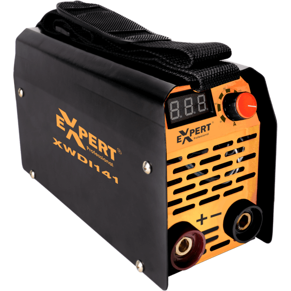 Expert inverteres hegesztő drótkefével és hegesztőmaszkkal. Hegesztőáram 20-140 A. Elektróda átmérő 1,6-3,2 mm.
