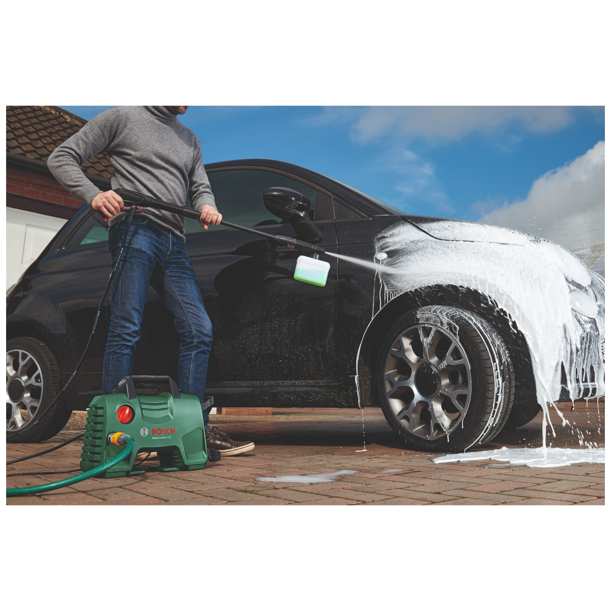 120 bar nyomású szivattyúja és a mellékelt fúvókák biztosítják a sokoldalú felhasználást – legyen szó autóról, kerékpárról, kerti bútorokról vagy teraszról. A 450 ml-es magasnyomású tisztítószer-fúvóka gyors szappanadagolással rövidíti le a tisztítási időt, a gyorszáras csatlakozók és a kompakt kialakítás pedig egyszerű kezelhetőséget nyújtanak.