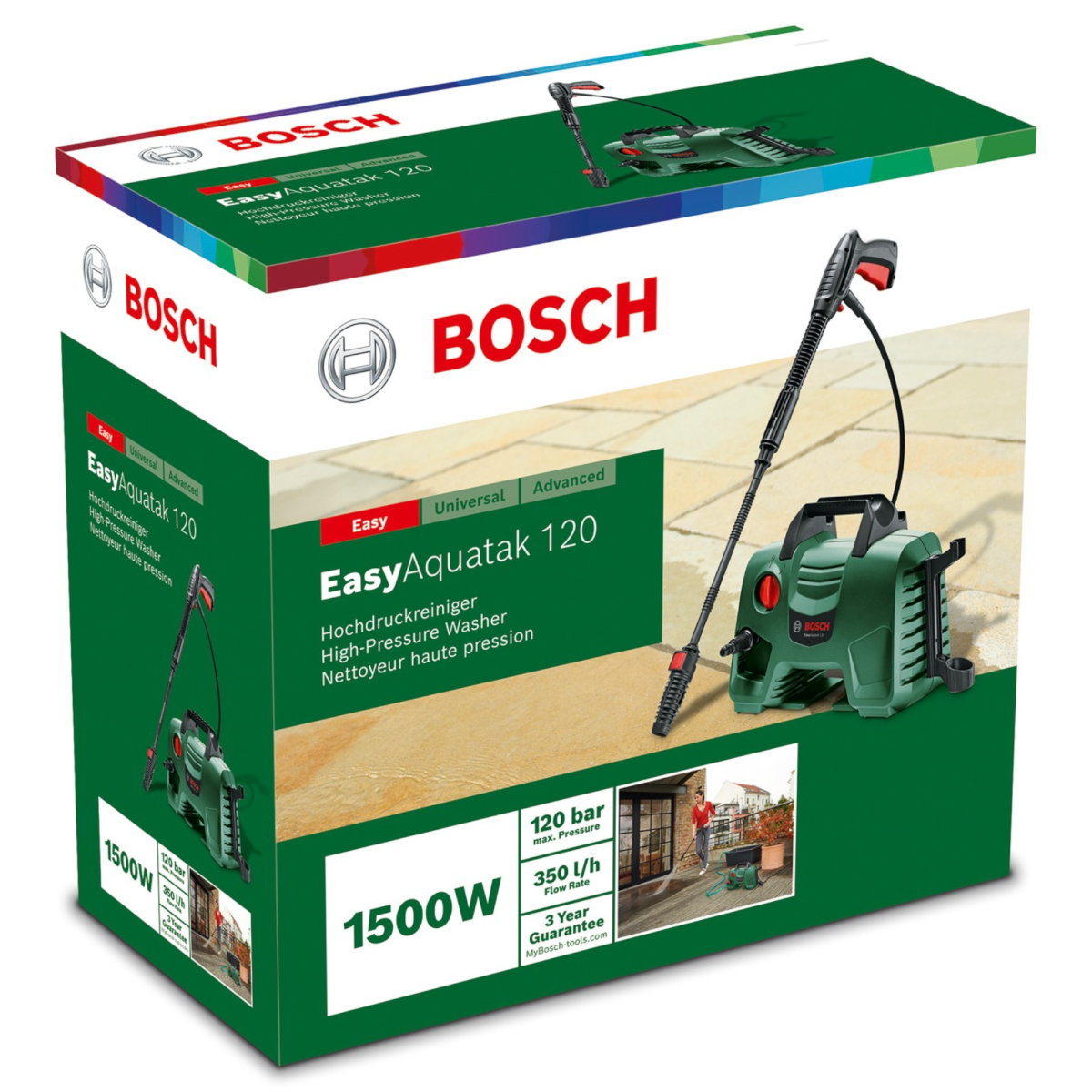 A Bosch EasyAquatak 120 egy kényelmes, gyors és hatékony tisztításra tervezett kompakt magasnyomású mosó, amely ideális kisebb és közepes nehézségű feladatokra.
