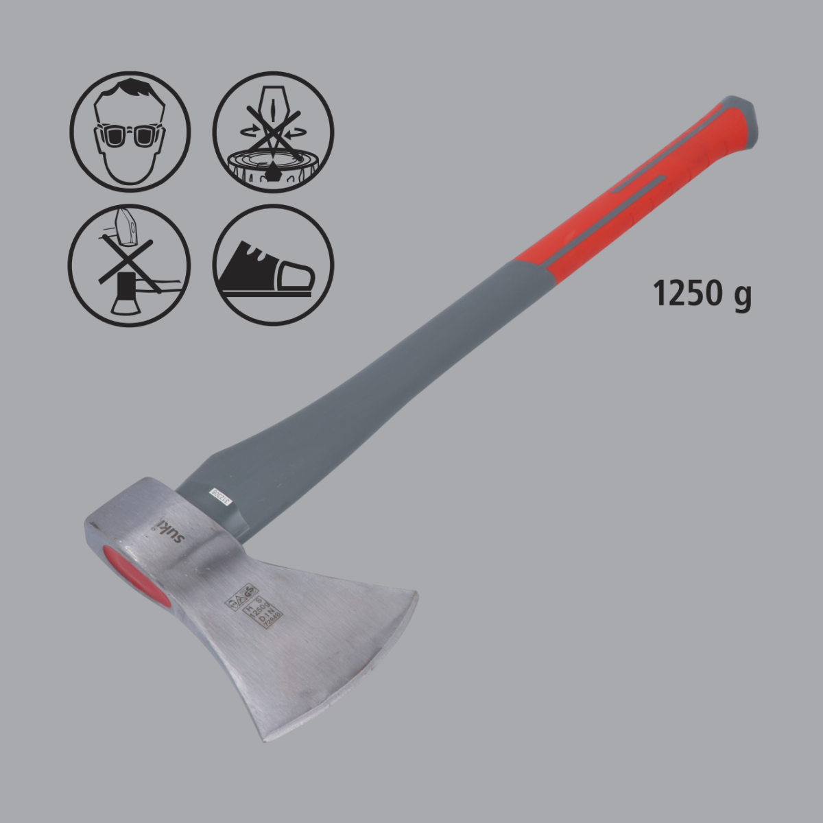 Ez a 1250 g súlyú Suki fejsze a DIN 7294B szabványnak megfelelően készült és C45-ös acélból, amely biztosítja a kiváló tartósságot és éles vágást.