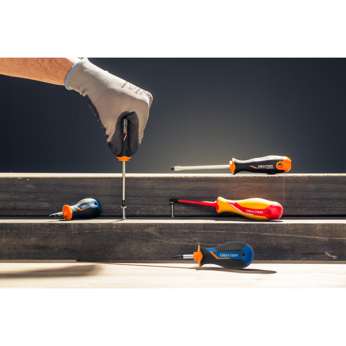 A Dexter 2 PH1x25 mm-es Philips csavarhúzó ideális kisebb, nehezen hozzáférhető helyeken végzett csavarozási munkákhoz. Krómozott acélpengéje tartósabb használatot biztosít, míg puha, csúszásmentes markolata kényelmes fogást nyújt.