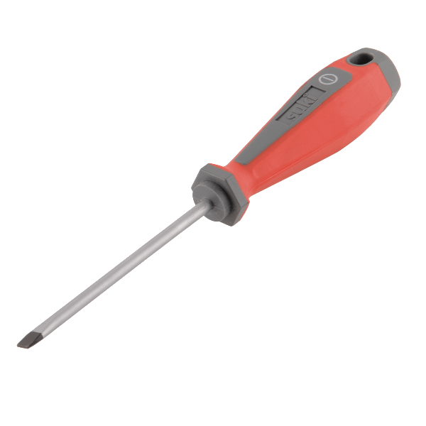 Csavarhúzó 75x5 mm, SL (lapos), kétkomponensű műanyag nyéllel, ISO 2380 szabvány szerint.