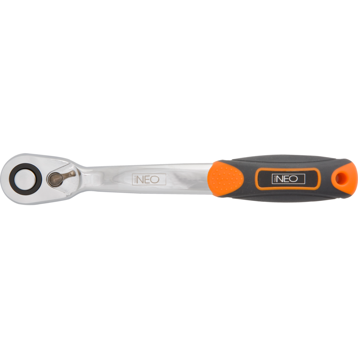 NEO racsnis hajtókar króm-vanádium acél testtel, a DIN 3122 szabványnak megfelelő kivitelben. A precíz munkát lehetővé tevő 72 fogas kilincsmű a szerszám élettartamát meghosszabbító, kivételesen tartós króm-molibdén acélból készült. Az ergonómikus bimateriál markolat javítja a használati kényelmet. A szerszám minőségét bizonyítja a TÜV tanúsítvány és a gyártó által nyújtott 25 éves jótállás. A NEO márka a professzionális igényeket is kielégíti.