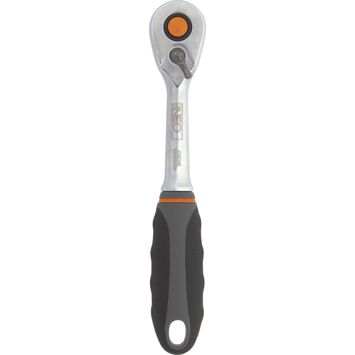 NEO 195 mm hosszú, 3/8"-os racsnis hajtókar a DIN 3122 szabványnak megfelelően kivitelezett króm-vanádium acél testtel. A 48 fogas kilincsmű a szerszám élettartamát meghosszabbító, kivételesen tartós króm-molibdén acélból készült. Az ergonómikus bimateriál markolat javítja a használati kényelmet. A szerszám minőségét bizonyítja a TÜV tanúsítvány és a gyártó által nyújtott 25 éves jótállás. A NEO márka a professzionális igényeket is kielégíti.