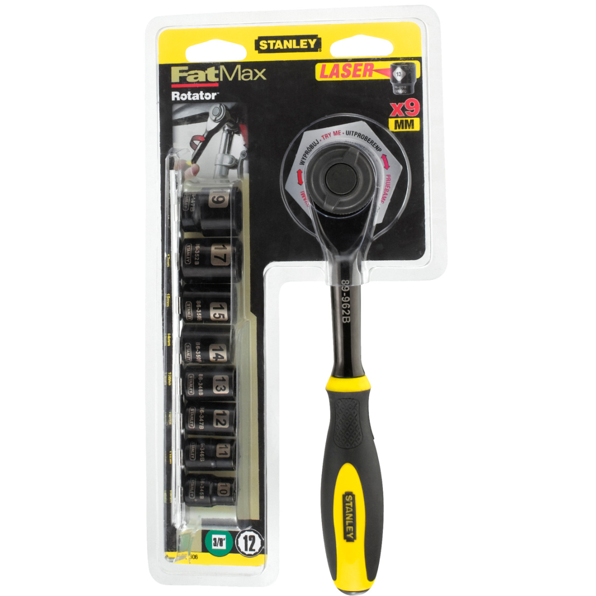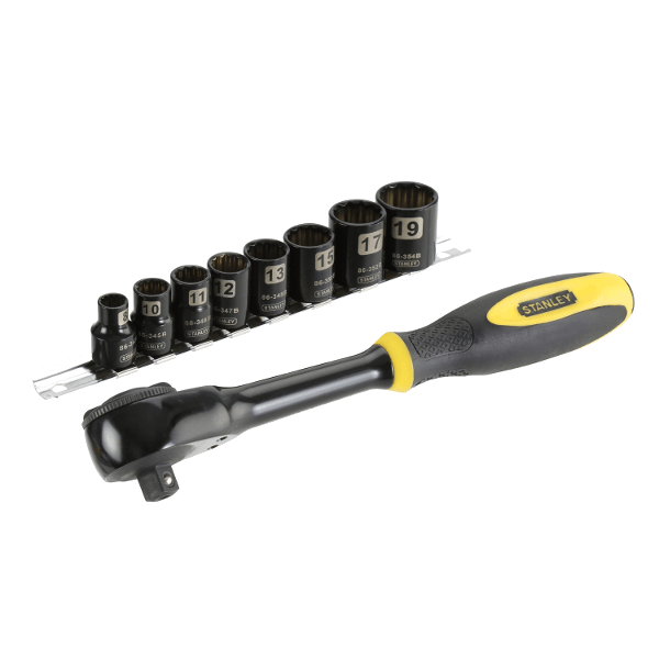 9 részes dugókulcs készlet 8 fejjel. 3/8" -os, 12 lapu. Feketeszínű krómfelület, megnövelt korrózióállóság. Lézerrel maratott jól látható jelzések. Rotációs markolat. A markolat is racsniként üzemel, így azt forgatva is tekeredik a fejrész. Gyors meghúzásokhoz, nehezen hozzáférhető helyekhez 8, 10, 11, 12, 13, 15, 17, 19 mm.