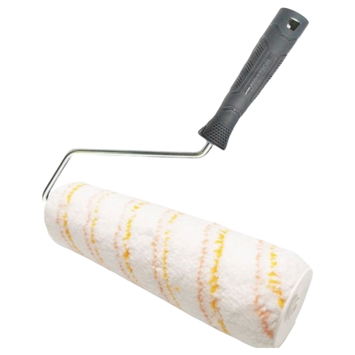 A barna/sárga csíkos kivitel könnyen beazonosíthatóvá teszi a hengert, a 250 mm szélességű henger pedig hatékony munkát tesz lehetővé nagyobb, sima felületeken is. A strapabíró polipropilén nyél kényelmes fogást biztosít a festés során.