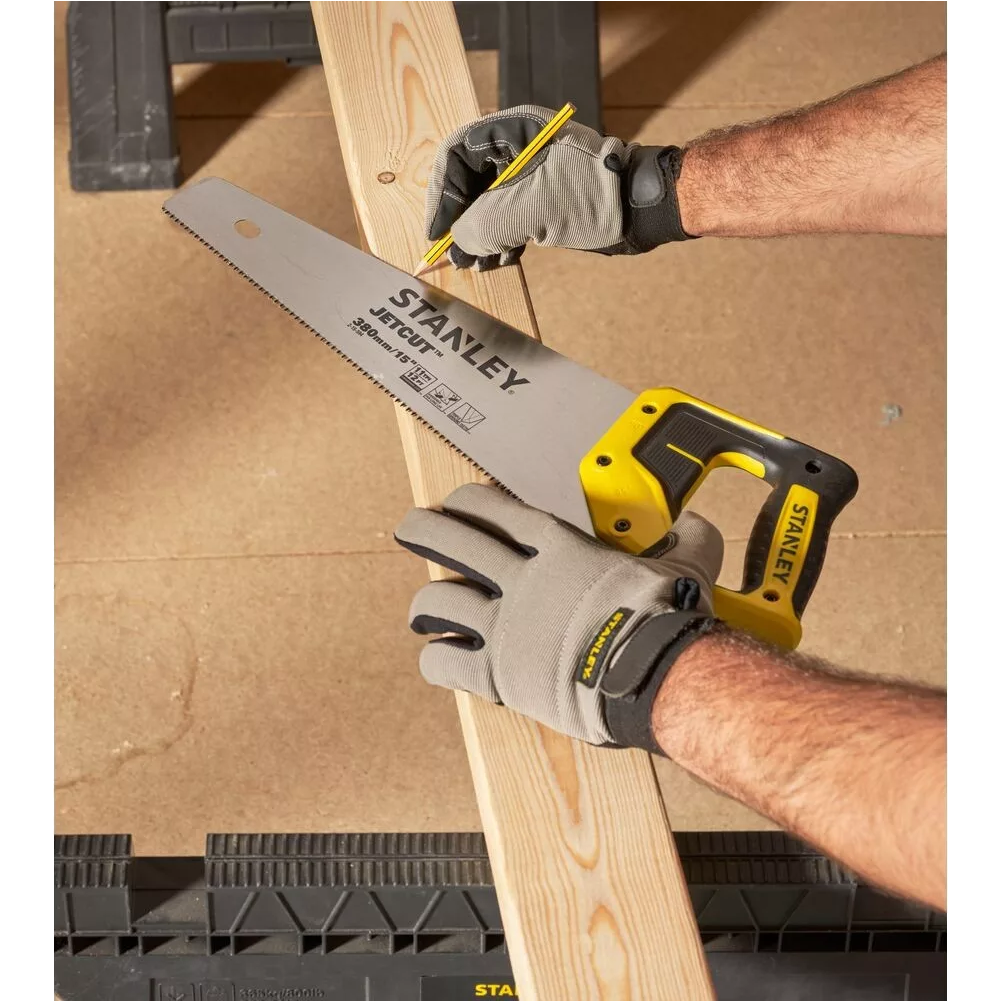 Finom, 11 TPI. Bimateriális nyél, az ultrahangos hegesztés mellett extra csavarrögzítés a biztonság érdekében. 3 oldalú fogazás pengeéles vágófelületet biztosít. Ujjtámasztós nyél praktikus rásegítés a vágás megkezdésekor. Nyélkialakítás 45 és 90° jelöléssel. Új edzési eljárás a fogak esetén- megnövelt élettartam.