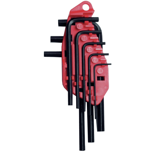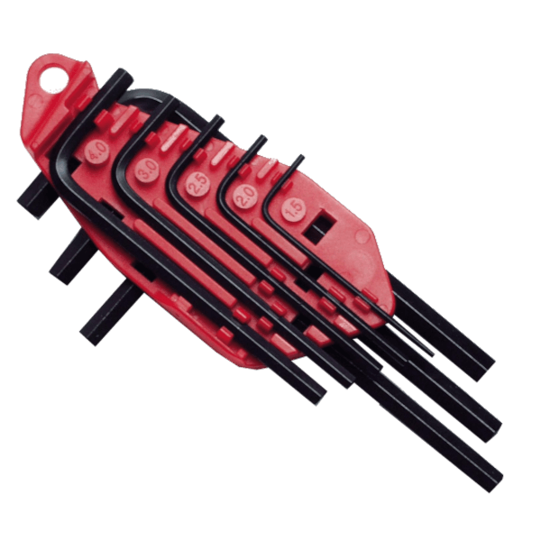 Imbuszkulcs készlet, 8 részes: 1,5-6mm. A szabványos metrikus imbuszkulcs készletek nagy húzószilárdságú acélból készülnek. Méretjelzéssel és színkóddal van tárolva a műanyag tartóban a könnyű megtalálhatóságért.