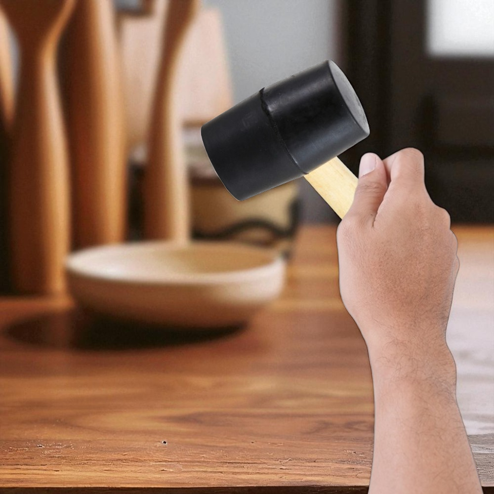 A gumikalapács ideális választás olyan feladatokhoz, ahol fontos, hogy ne sérüljön az ütéssel érintett felület. A 45 mm átmérőjű fekete gumifej kíméletes, mégis kellő erőt biztosít a precíz illesztéshez, míg a fa nyél kényelmes fogást és jó kontrollt nyújt munka közben.