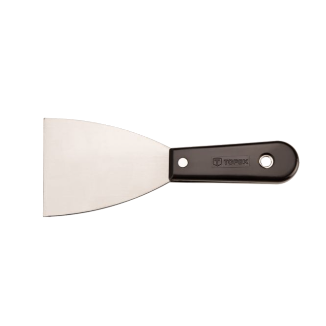 A TOPEX festőspakli alkalmazásra talál felújítási és befejező munkálatok során, pl. gipsz felvitelében, vagy felületekről szennyeződések eltávolításában. A penge polírozott. Markolata erős műanyagból készül. A TOPEX márka ezermestereknek készül.