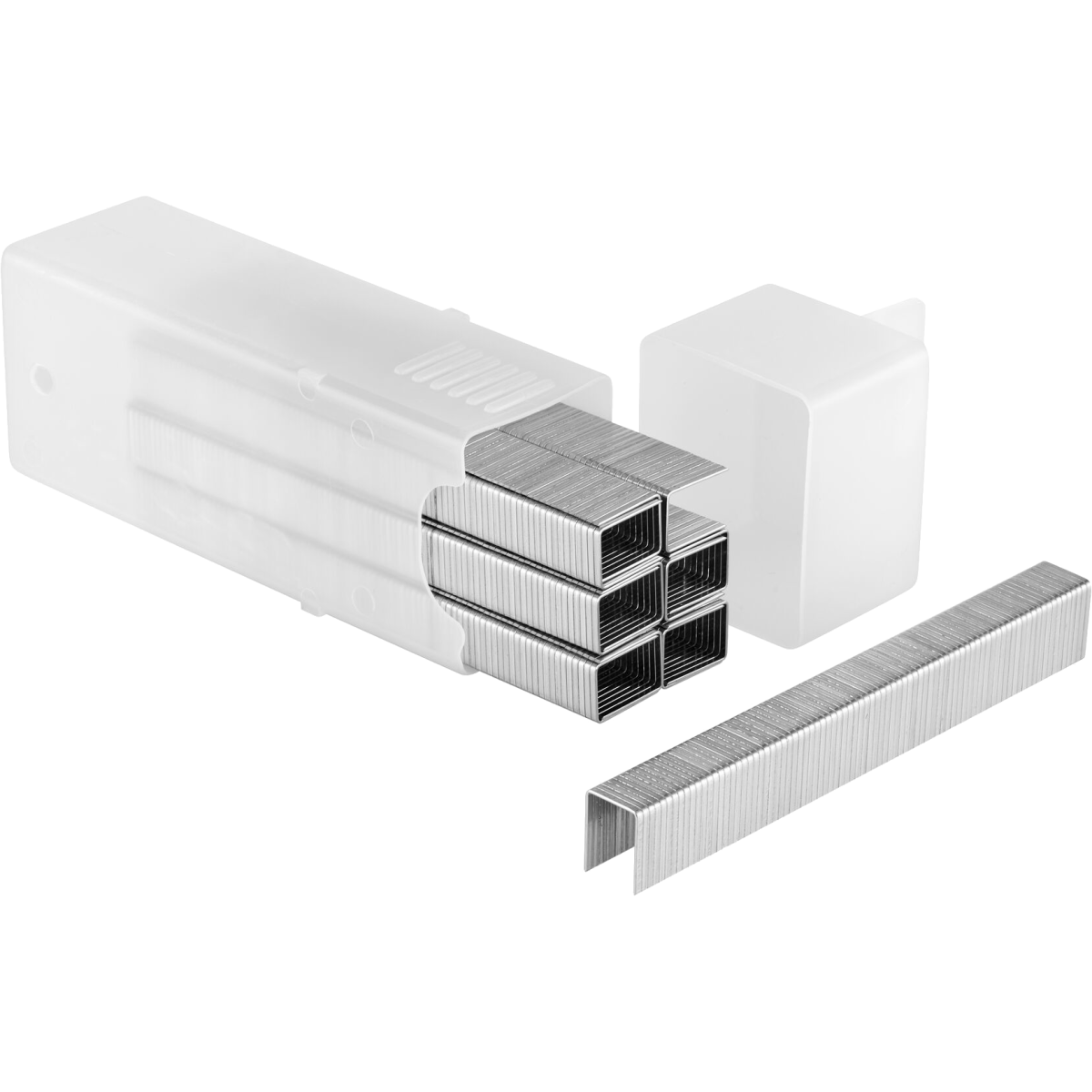Galvanizált "G" típusú, 14 mm-es acél kapocs 1000 db-os kiszerelésben, praktikus, újrazárható csomagolásban. Szélesség: 10,6 mm; átmérő: 1,25 mm. Használható többféle tűzőgéphez, például Rapid, Novus, Arrow, Rapesco.