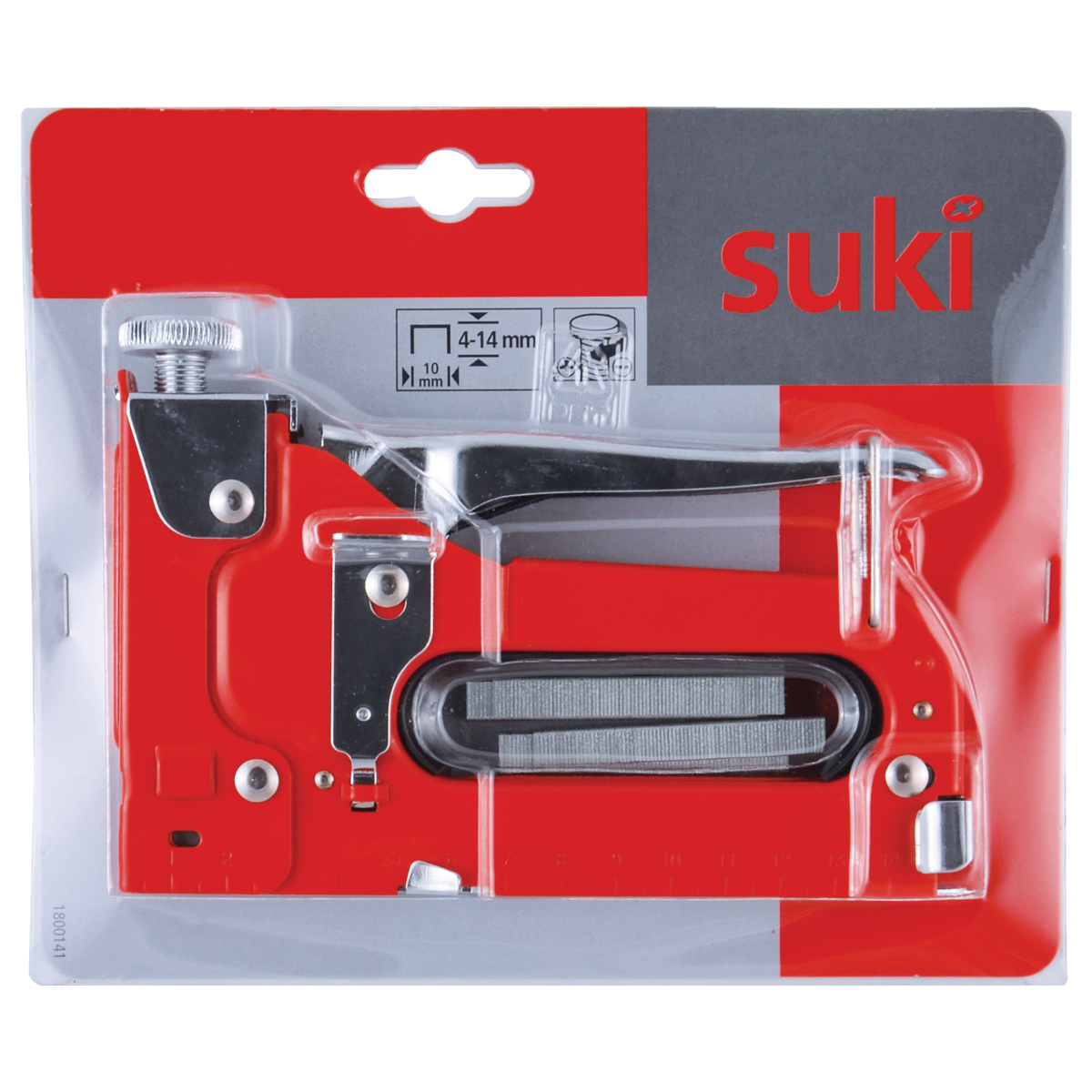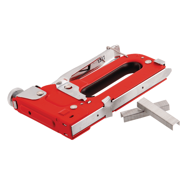 Különféle anyagok rögzítésére és tűzésére alkalmas az állítható tűzési erőnek köszönhetően (4-14 mm); fém ház; 300 db 8 mm-es tűzőkapocs.