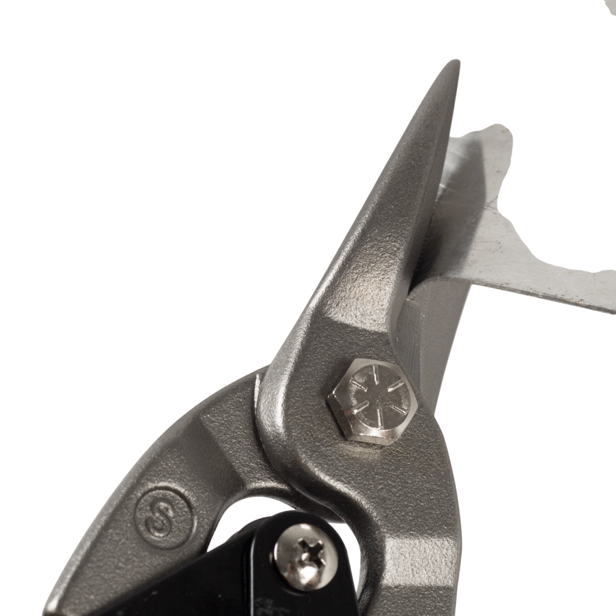 A 250 mm hosszúságú, egyenes vágásra tervezett Dexter lemezvágó olló hatékony megoldás lemezek, fémes anyagok méretre vágásához. A 60CrV acélból kovácsolt pengék kiváló vágóteljesítményt biztosítanak, a puha markolat pedig stabil fogást nyújt. A beépített akasztókampó lehetővé teszi az olló egykezes zárását vagy tárolását.