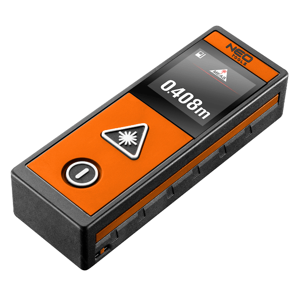 NEO Lézeres távolságmérő (ref. szám 75-203) kimagasló minőségű távolság, felület, térfogat mérő készülék.AA távolságmérő funkciói lehetővé teszik az indirekt mérést (a Pitagorasz számítási móddal), valamint a folyamatos mérést. Ezen túlmenően a készülék automatikus vízmértékkel is rendelkezik, ami lehetővé teszi a készülék beállítási szögének leolvasását. A készülék maximális mérési távolsága 40 m, a mérési pontosság +/- 2 mm. A termék hasznavehető az építőiparban, geodéziában, műszaki projekteknél, valamint a háztartásban. A készülék 0°C és 40°C közötti hőmérséklet tartományban alkalmazható. A távolságmérő modern érintőkijelzővel került felszerelésre. A CE tanúsítvány igazolja az európai biztonsági normáknak való megfelelést.A NEO márka a professzionális igényeket is kielégíti.