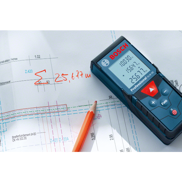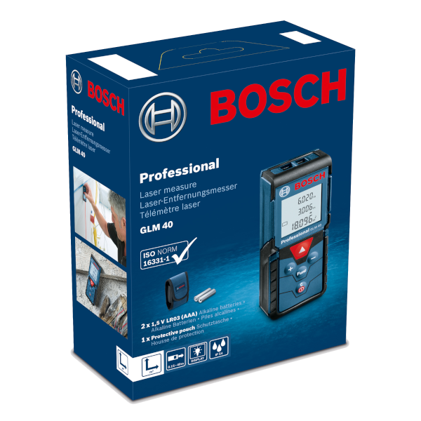 Minden szükséges mérési mód egyetlen kompakt kialakítású eszközben. Minden fontos mérési mód elérhető: hagyományos hossz-, terület- és térfogatmérés, valamint közvetett magasságmérés. Könnyedén leolvasható adatok a világító kijelzőnek köszönhetően, amelyen mindig látható az utolsó három mérés eredménye. A memóriafunkció automatikusan menti az utolsó 10 mérést a gyors leolvasás érdekében Műszaki adatok: Lézerdióda 635 nm, < 1 mW, Mérési tartomány 0,15 – 40,00 m, Mérési idő, tipikus < 0,5 s, Lézerosztály 2, Mérési pontosság, tipikus. ± 1,5 mm* (*további, használatfüggő eltérés), Mérési idő max.: 4 s, Áramellátás: 2 x 1,5 V LR03 (AAA), Kikapcsolási automatika: 5 perc. Mértékegységek: m/cm, láb/hüvelyk. Memóriaértékek száma: 10. Por és fröccsenő víz elleni védelem: IP 54. Lézer színe: Piros, Mérési tartomány, max.: 40 m. Termék tartalma: Gyártói tanúsítvány, védőtáska, 2 x 1,5 V-os LR03 (AAA) elem.
