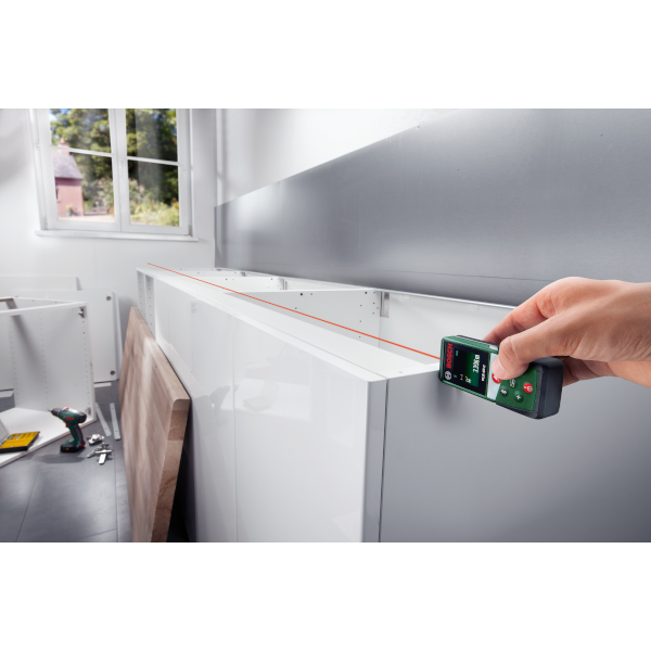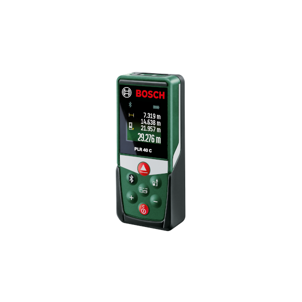 Pontos lézeres mérés 40 m-ig alkalmazáshoz csatlakoztatott digitális dokumentálással. Felújítástervezés néhány érintéssel. A PLR 40 C nem csak akár 40 m-es távolság mérésére alkalmas lézeres pontossággal, hanem a bútorok méreteit is azonnal meghatározza. Integrált funkciói lehetővé teszik a terület és térfogat kiszámítását például járólap lerakásához, tapétázáshoz vagy falfestéshez szükséges anyagmennyiség meghatározásához. Az eredmények jól olvashatók a kiváló minőségű színes kijelzőn. Minden adat elküldhető a Bosch alkalmazásba digitális dokumentálási és projekttervezési célra, így időt takaríthat meg, és megelőzheti a hibákat. Lézerdióda 635 Nm Lézerosztály 2 Mérési tartomány 0,05 – 40,00 m Mérési pontosság, tipikus. ± 2,0 mm-ben Mérési idő, tipikus 0,5 s Maximális mérési idő 4 s Akkumulátor 2 x 1.5 V LR03 (AAA) Kikapcsolási automatika 5 perc.