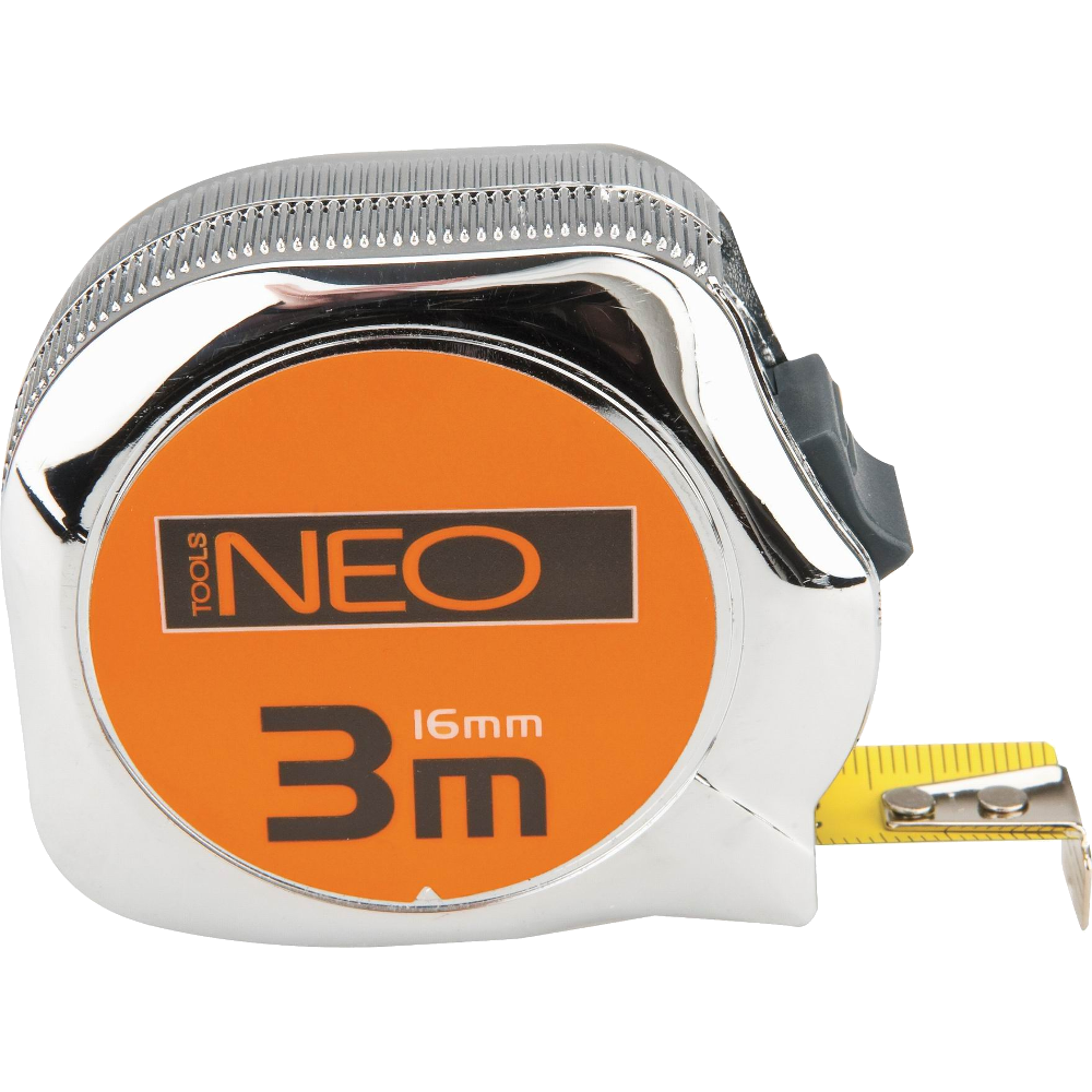 NEO acél mérőszalag, dupla szalagreteszeléssel. A mérőszalag poliamid bevonata védi a rányomtatott skálát a kopástól. A mágneses vég és a szalag profilja megkönnyíti a mérés kivitelezését. A tekercselési ütközéscsillapító védi a végzáró kampót a letöréstől. A szalagvég két szegeccsel megerősített. A ház ergonómikus formakialakítása biztos és kényelmes fogást nyújt, a csúszásmentes kivitel biztosítja a használati komfortot és biztonságot. Megbízhatóságának garanciája a MID európai uniós mérőeszköz irányelv követelményeinek megfelelő kivitel. A NEO márka a professzionális igényeket is kielégíti.