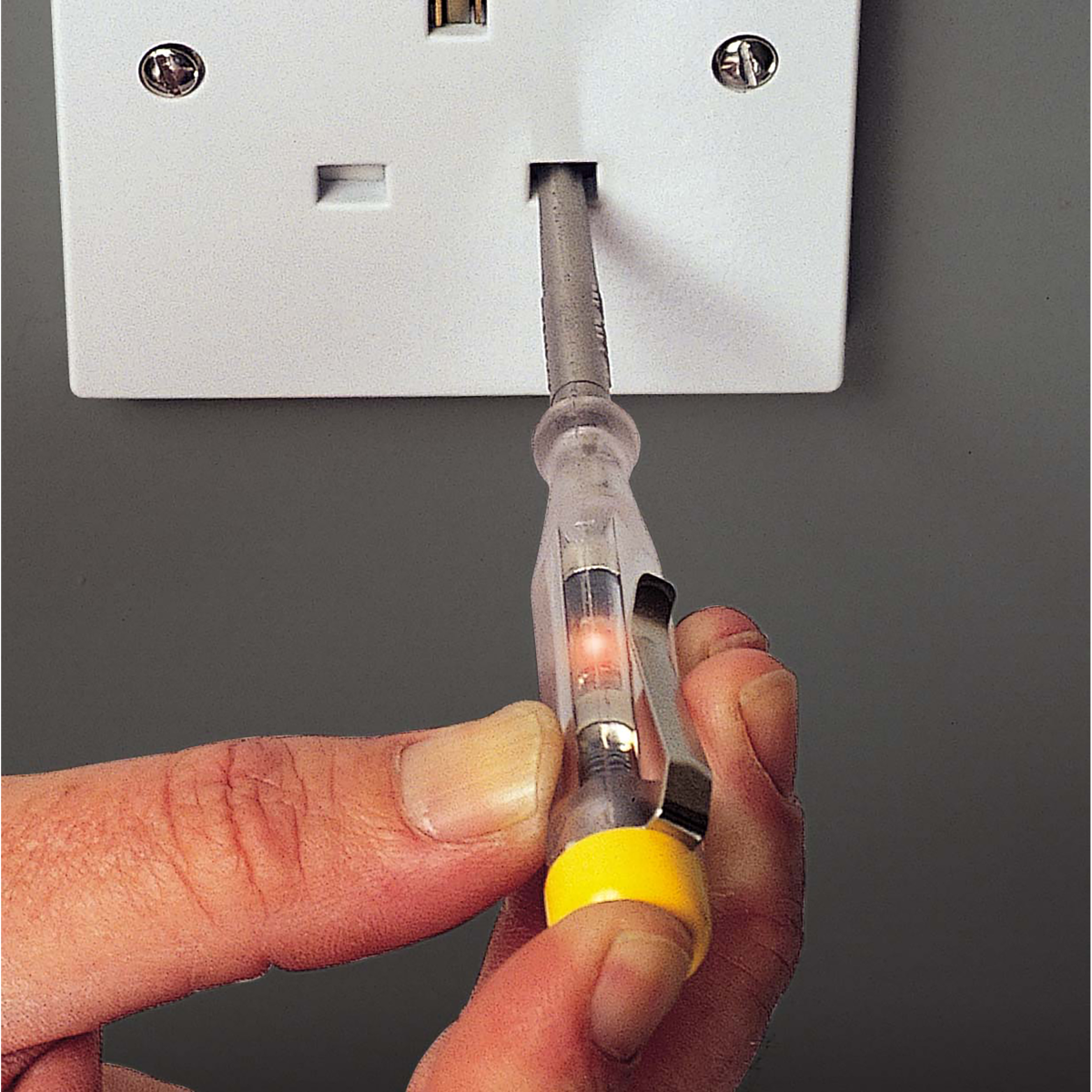 Feszültség kémlelő csavarhúzó szigetelt csavarhúzó pengével és szigetelt műanyag nyéllel rendelkezik. Nadrágcsipesszel van felszerelve a kényelem és a könnyű tárolás céljából. Látható villogó fény elektromos áram észlelésekor. Pengéje króm-vanádium acélból készült a hosszú élettartam érdekében.