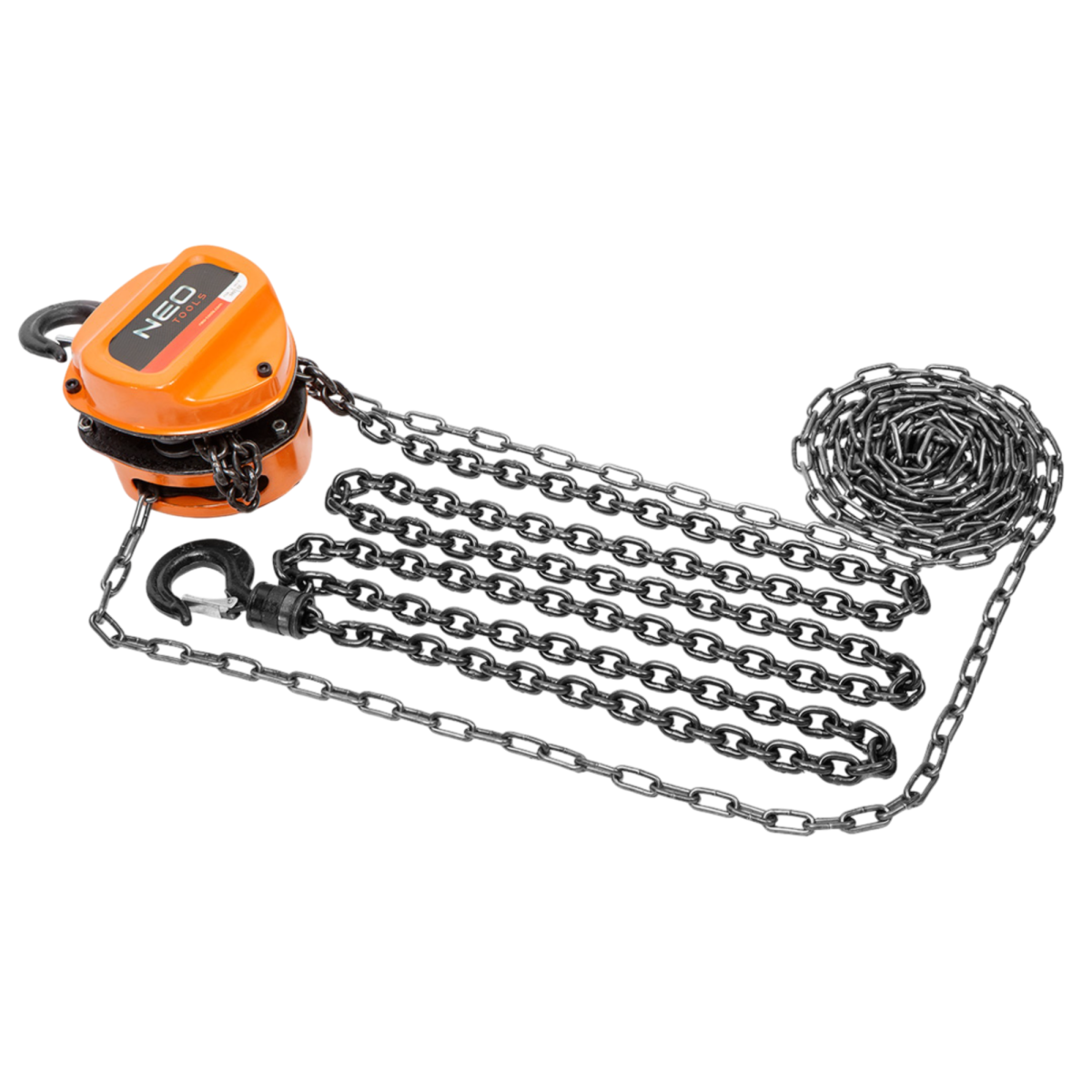A NEO 3 tonnás láncos emelő erős, nagyszilárdságú acélból készült 3 méteres emelőlánccal rendelkezik, amely biztosítja a nagy terhek biztonságos és stabil mozgatását. Professzionális használatra tervezett, ideális motorok, gépalkatrészek és egyéb nehéz tárgyak emeléséhez vagy felfüggesztéséhez. A masszív ház és a precíz mechanika hosszú távú, üzembiztos működést garantál.