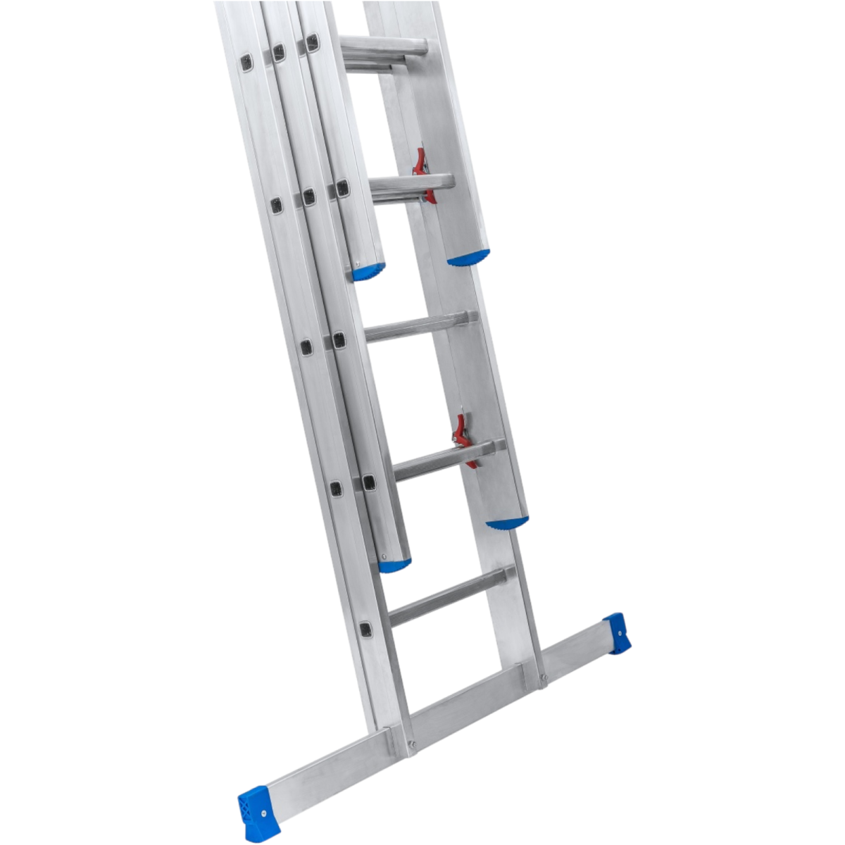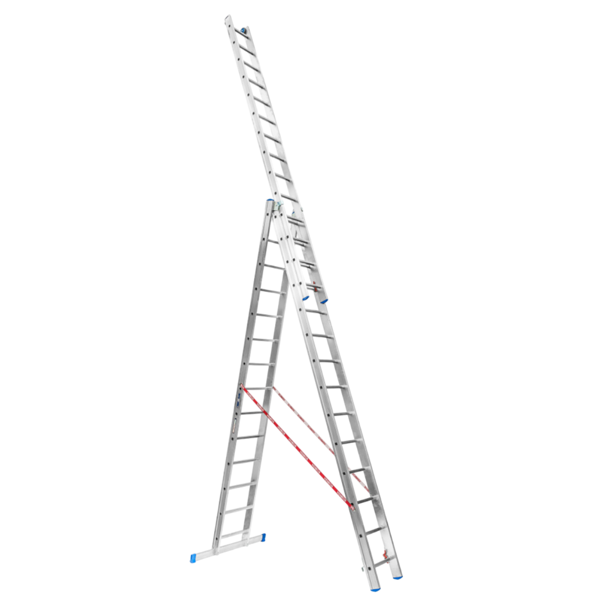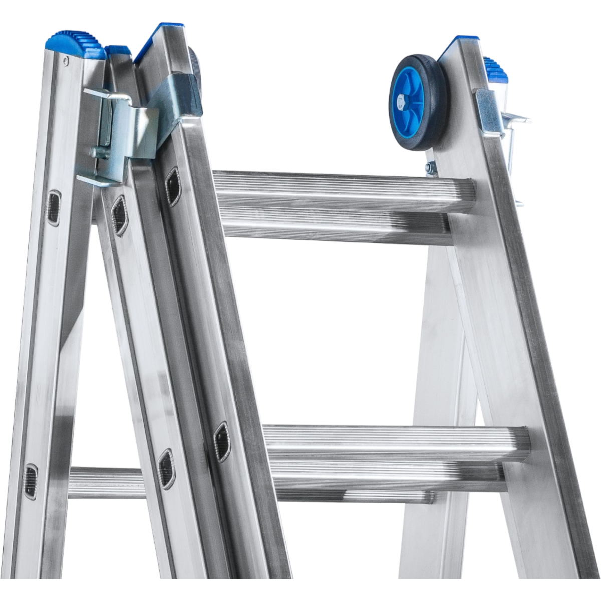 Az Alustand Blue Line 3x14 fokos professzionális alumínium létra ideális választás magasban végzett munkákhoz, 150 kg-os teherbírással. Egyedülálló funkciója a tetején elhelyezett falbarát, kopásálló kerekek, melyek segítségével a létra könnyen mozgatható és pozícionálható a falon, karcolások és sérülések okozása nélkül. A csúszásgátló műanyag talpak maximális stabilitást biztosítanak. Támasztó létraként használva a maximális elérhető munkamagasság 9915 mm.