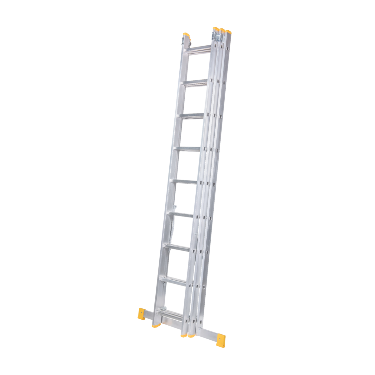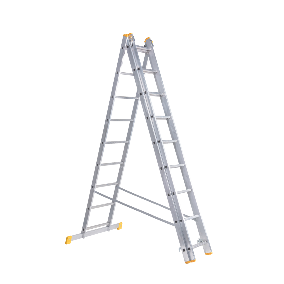 Az Alustep univerzális 3×9 fokos alumínium létra erős, mégis könnyű szerkezetével ideális választás háztartási és professzionális felhasználásra egyaránt. Több pozícióban használható: klasszikus támasztólétraként, tolólétraként vagy A alakban felállítva. Bordázott, csúszásmentes fokai biztonságosabb munkavégzést biztosítanak, a stabil kialakítás pedig megbízható alátámasztást nyújt különböző helyzetekben.