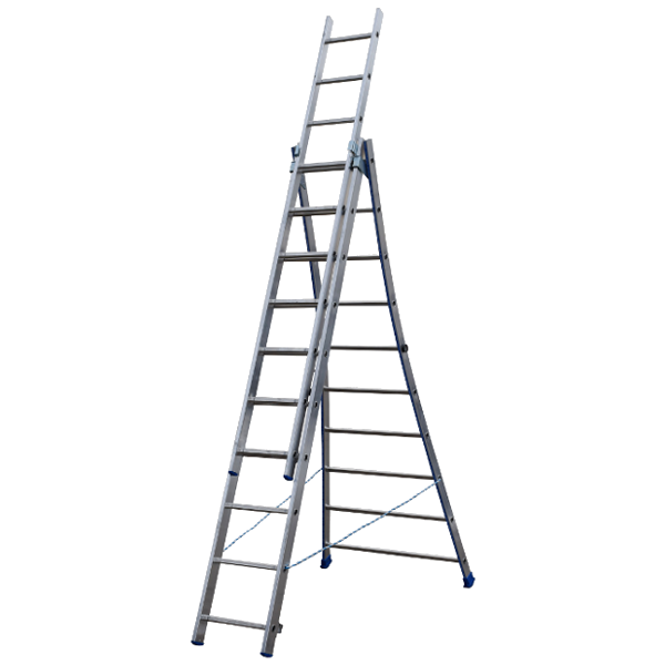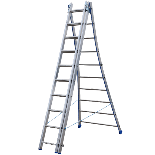 A szintező segít a létra megfelelő szögben történő elhelyezésében. A terpesztett szár nagyobb stabilitást biztosít egyenetlen talajon. Használható támasztó létraként, hagyományos létraként, és akár lépcsőn is. A legfelső tag külön is használható. Csúszásmentes talp. A zsanérok erősített acélból készülnek, ami nagyobb tartósságot biztosít, és lehetővé teszi a szint kompenzációt. Biztonsági kampók öntött alumíniumból reteszelővel. Acél megerősítő darabok az alsó fokokon.