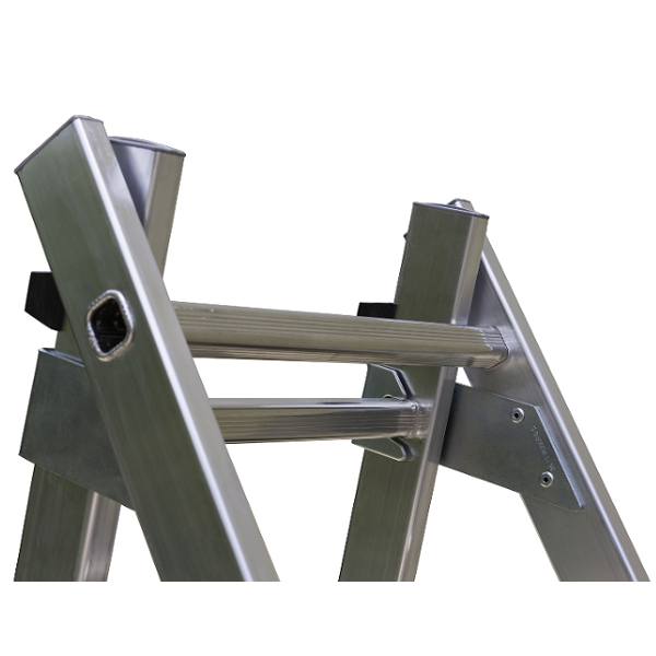 A szintező segít a létra megfelelő szögben történő elhelyezésében. A terpesztett szár nagyobb stabilitást biztosít egyenetlen talajon. Használható támasztó létraként, hagyományos létraként, és akár lépcsőn is. A legfelső tag külön is használható. Csúszásmentes talp. A zsanérok erősített acélból készülnek ami nagyobb tartósságot biztosít, és lehetővé teszi a szint kompenzációt.Biztonsági kampók öntött alumíniumból reteszelővel.Acél megerősítő darabok az alsó fokokon.