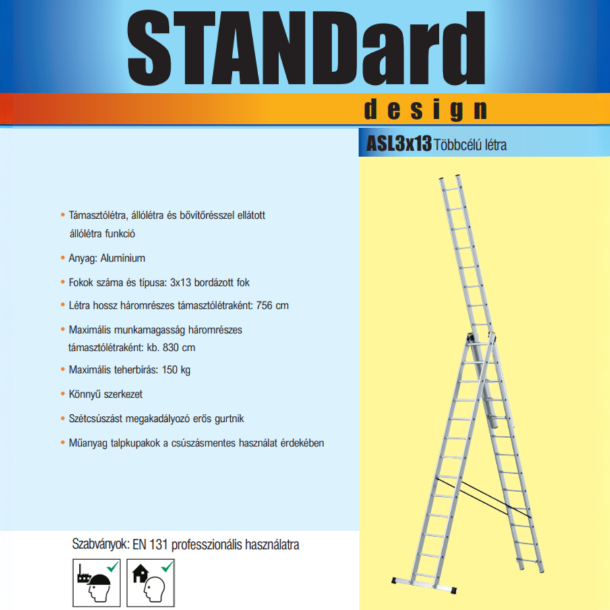 ✅ 3 az 1-ben kialakítás – támasztólétra, állólétra és bővíthető állólétra funkció