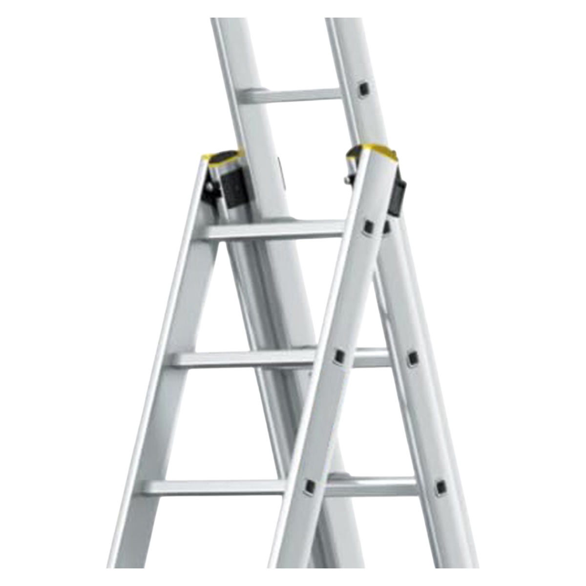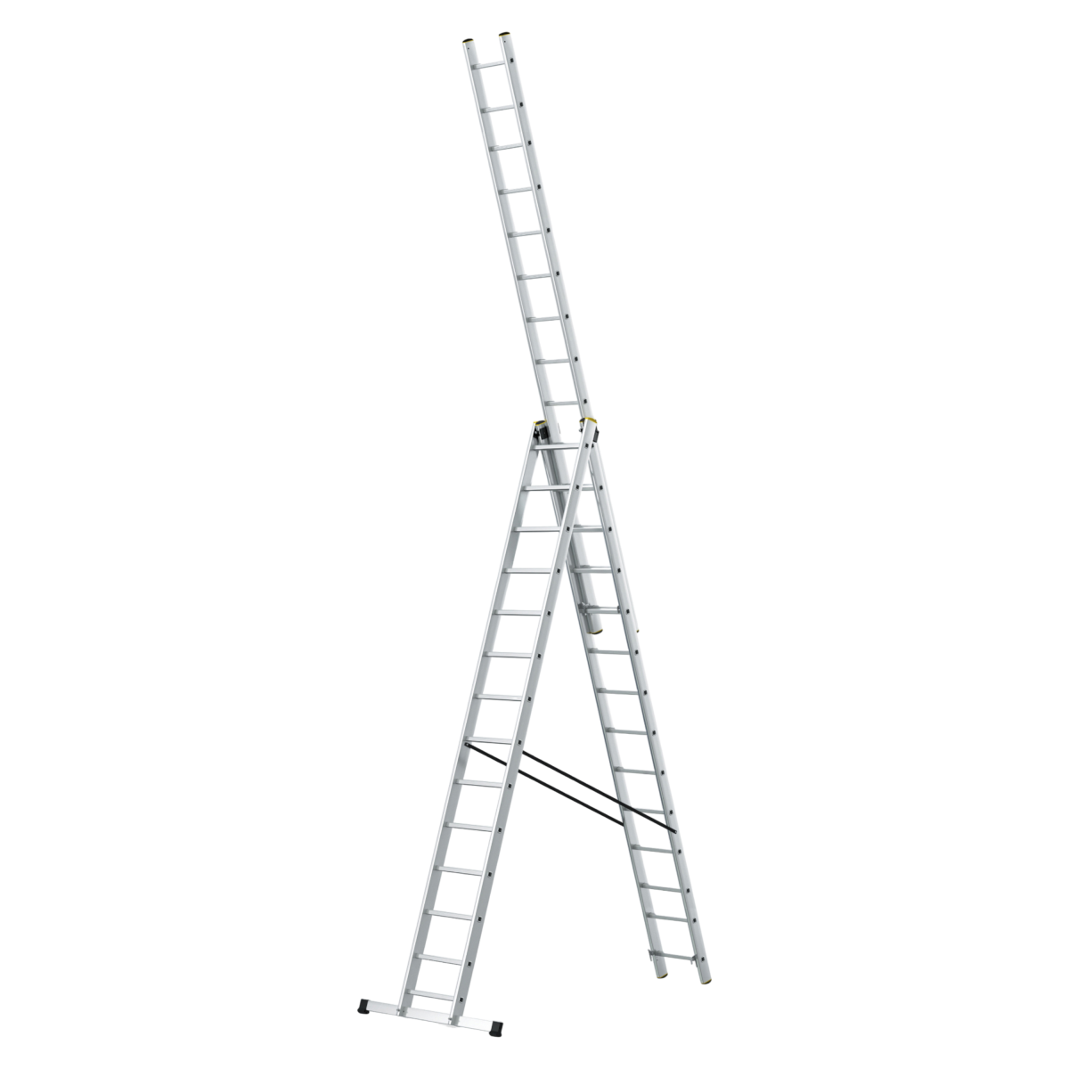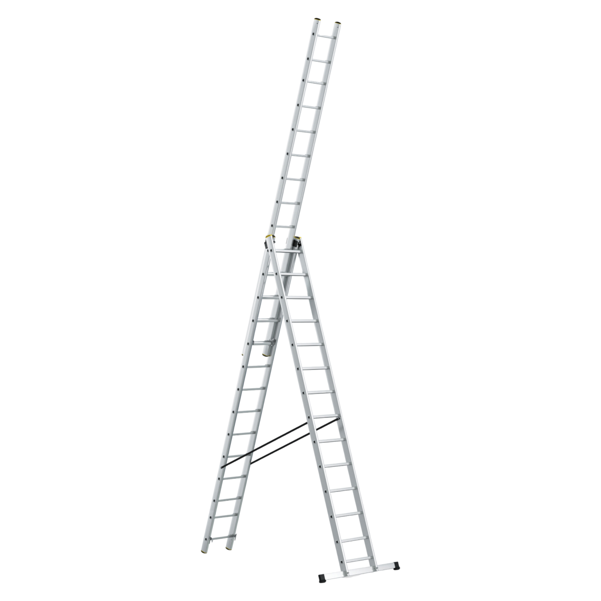 Ez a háromrészes 3x14 fokos alumínium létra sokoldalúan használható: állólétraként, támasztólétraként és bővítőrésszel ellátott változatban is kiválóan működik.