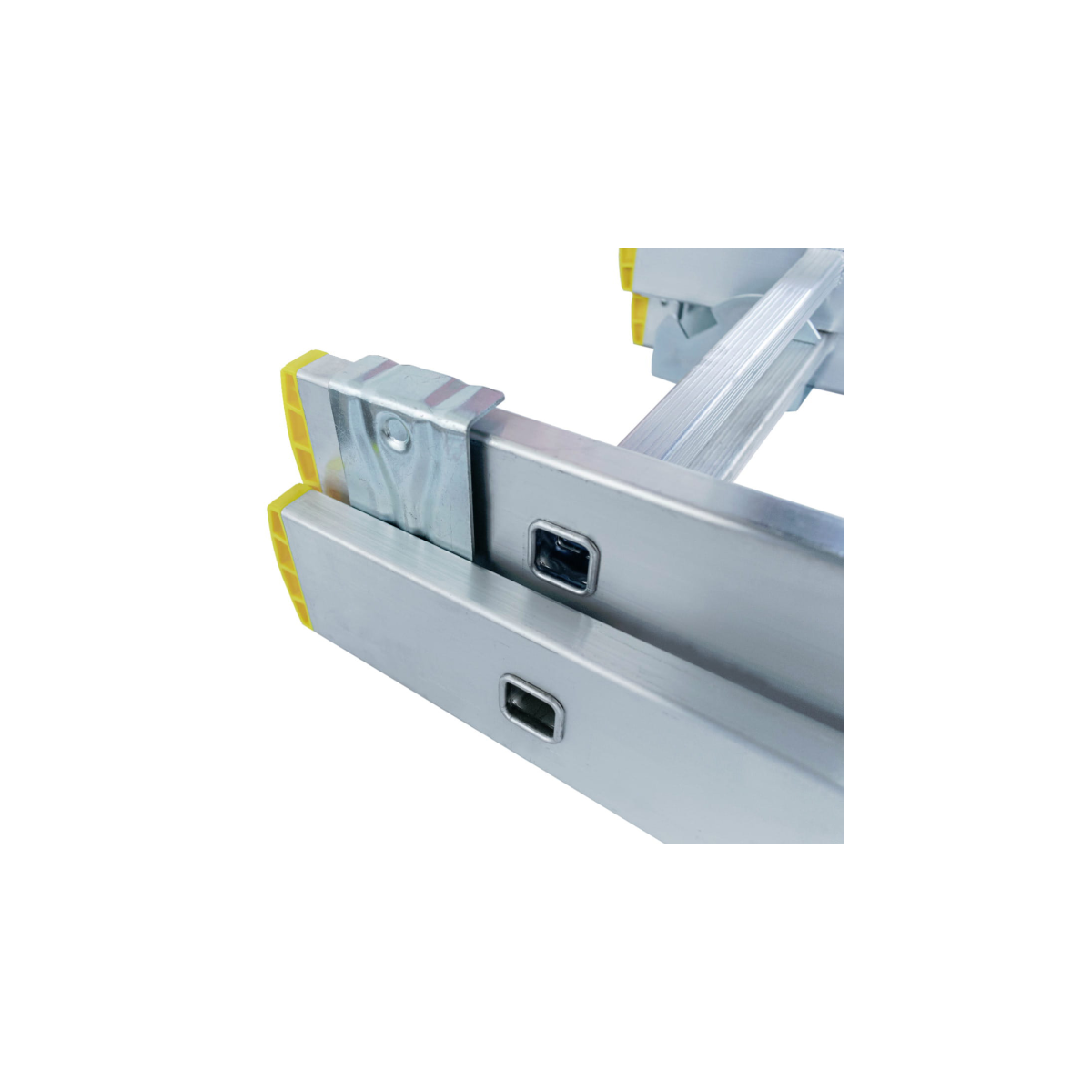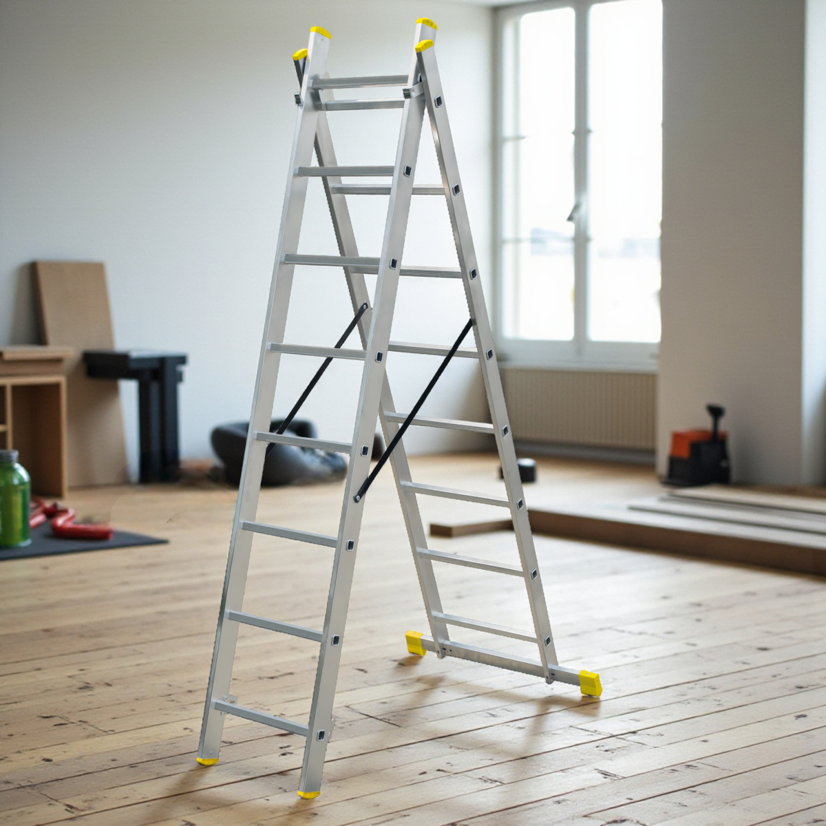 A STANDard Design alumínium univerzális létra praktikus megoldás háztartási és szakipari munkákhoz. Könnyű alumínium szerkezetének köszönhetően egyszerűen mozgatható, ugyanakkor 150 kg teherbírással rendelkezik. Használható kétrészes támasztólétraként és állólétraként, így többféle feladathoz is alkalmas.