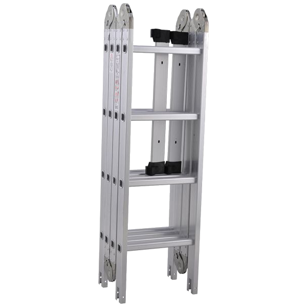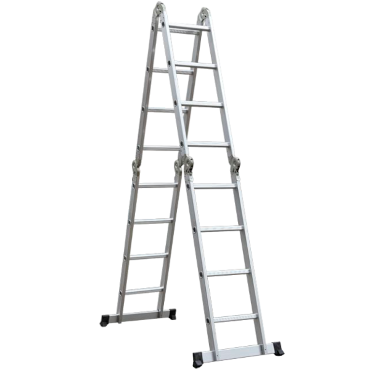 Univerzális csuklós létra, 4x4 fokos; teherbírás: maximum 150 kg; kétoldalas létra magasság: 232 cm; teljes nyitott magasság: 470 cm; állvány magasság: 125 cm; támasztólétraként, kétoldalas állólétraként és munkaállványként is használható, igazán praktikus darab.