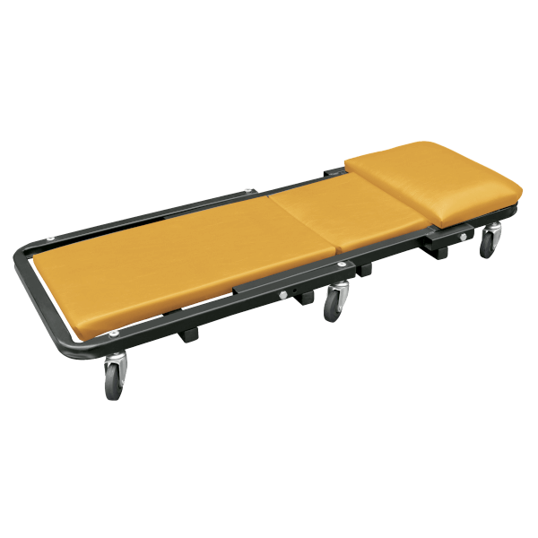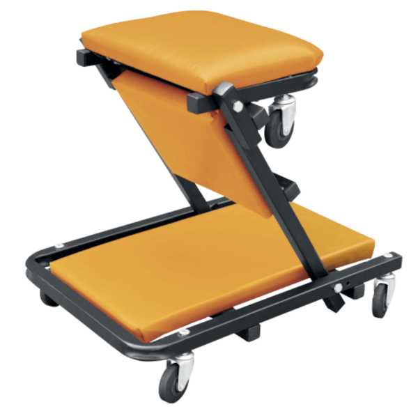 Egyszerű váltás az ülő és fekvő pozíciók között, a párnázott fejrésszel ellátott fekvőfelület kényelmes munkavégzést biztosít. Méretek fekvő pozícióban: 104 x 40 x 15 cm, teherbírás: 200 kg .Méretek ülő pozícióban: 54 x 40 x 50 cm, teherbírás: 150 kg, 63mm görgőkkel.