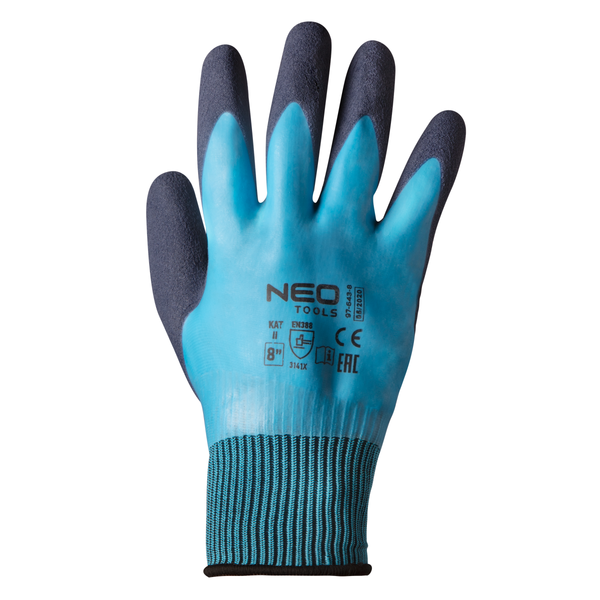 A NEO munkakesztyű védi a kezét a szennyeződésektől, karcolásoktól és a munka közbeni káros hatásoktól. Kettős latexréteggel borított poliészterből készült. Használat közben kényelmet biztosítanak, lehetővé teszik a szilárd fogást, még a kisebb tárgyaknál is, ugyanakkor megakadályozzák, hogy a szerszámok kicsússzanak a kezéből. A CE-jelölés biztonsági garancia, amely bizonyítja, hogy a termék megfelel az összes uniós követelménynek. Méretekben kapható: 8", 9", 10". A KÉP CSAK ILLUSZTRÁCIÓ!
