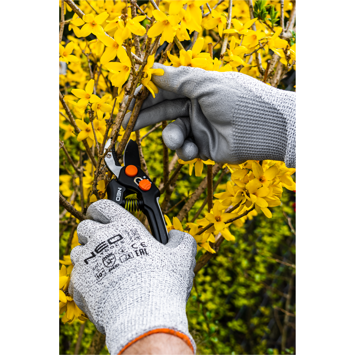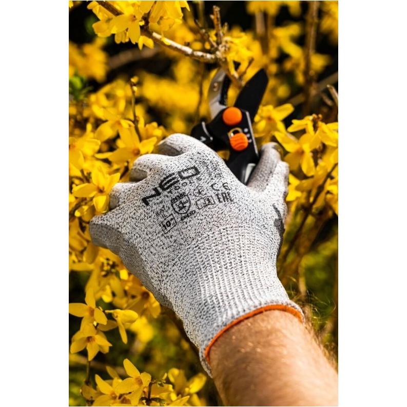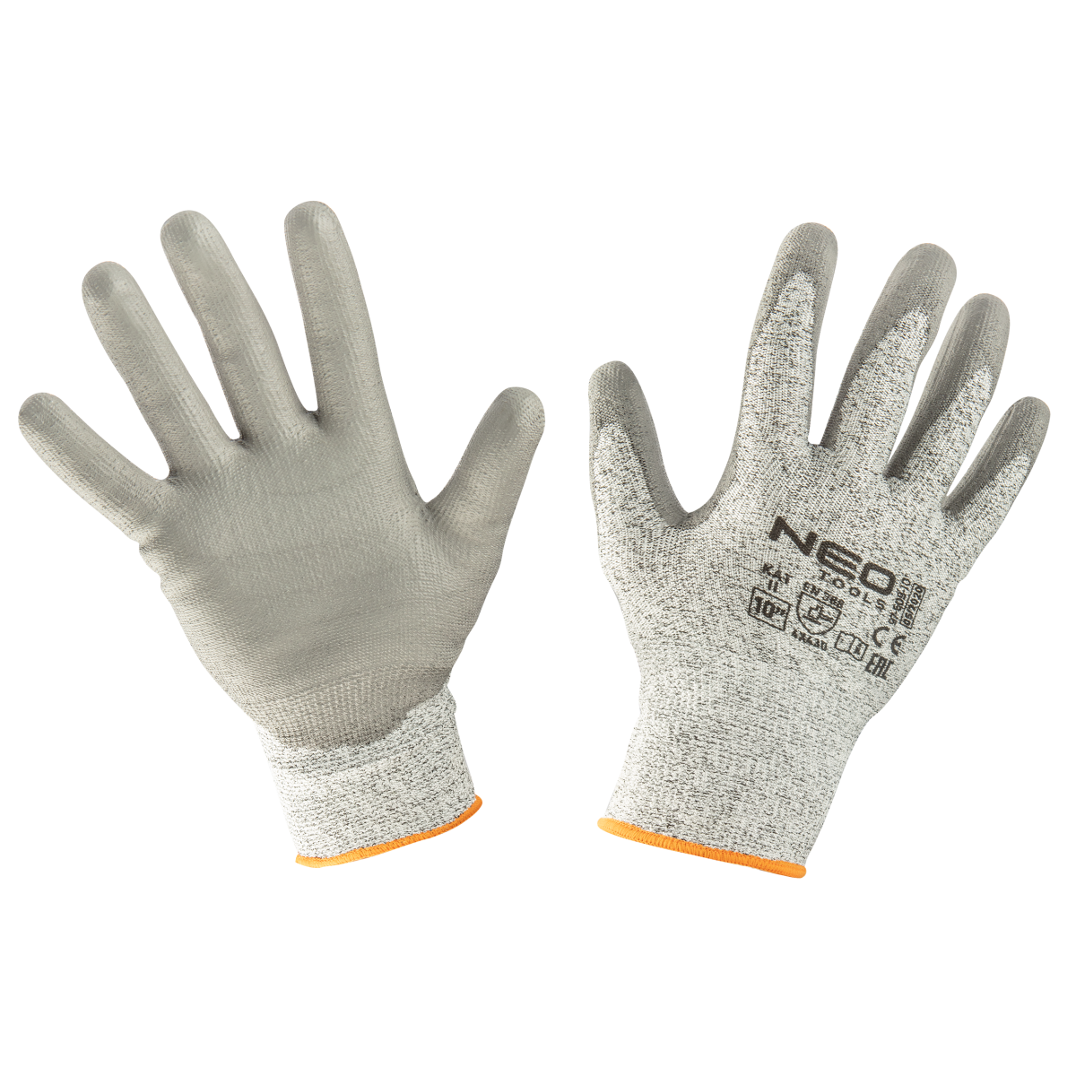 Alkalmazható mindenféle szállítási, rakodási és raktári munkához. Szerelési munkákhoz, apró alkatrészek gyártásánál, barkácsoláshoz, autószereléshez, kertészetben. Fő anyaga: vágásbiztos poliészter kötött anyag, bevonat: PU. Jól illeszkedik a kézhez. Kopásállóság (0-tól 4-ig) 4, éles tárgy vágás X (nem alkalmazható), szakadás-ellenállás (0-tól 4-ig) 4, szúrásállóság (0-tól 4-ig) 3, vágási ellenállás az EN ISO 13997 szerint D.