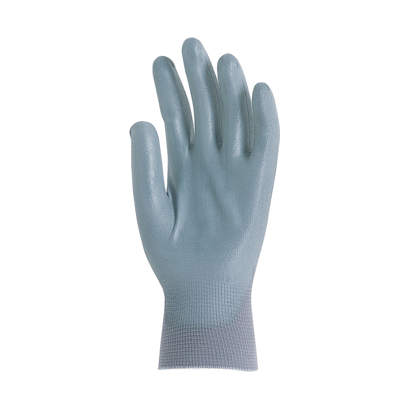Alkalmazása szerelési munkálatokhoz javasolt. Kötött, rugalmas, nagy szakítószilárdságú 100% poliamid szál, tenyéren poliuretánnal mártott, precíziós kesztyű gumírozott mandzsettával, szellőző kézháttal, szürke színű változat.