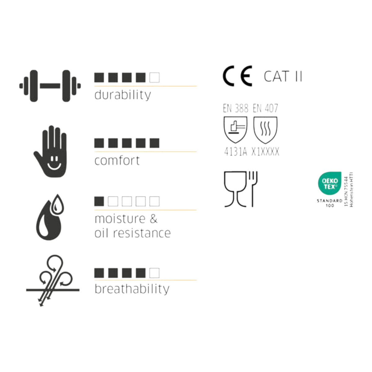 Könnyű, rugalmas szerelőkesztyű, amely „második bőrként” illeszkedik a kézre. A nitril mikrohab bevonat nedvességlepergető és jó tapadást ad, a varrásmentes kötés pedig kényelmes, hosszabb használat során is.