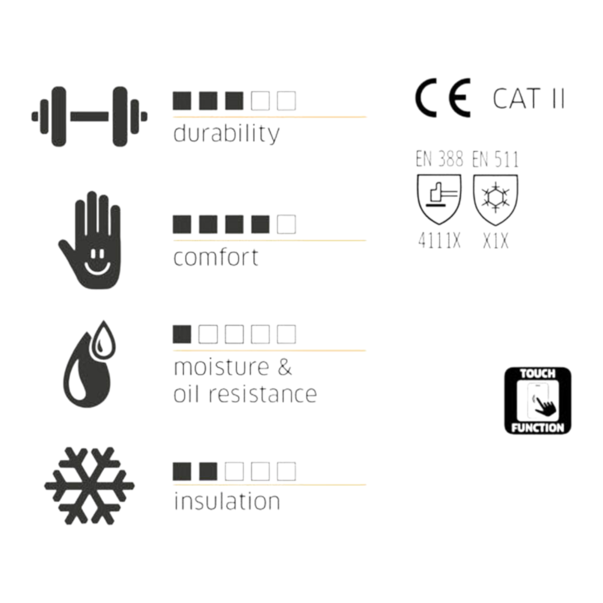 Varrásmentes, rugalmas szerelőkesztyű hűvös környezethez (ideális 0 °C-ig). Folyadéklepergető, nitril bevonata biztos fogást ad még sima felületeken is, miközben a beépített érintőképernyős funkcióval kesztyűben is használhatod a telefonod.