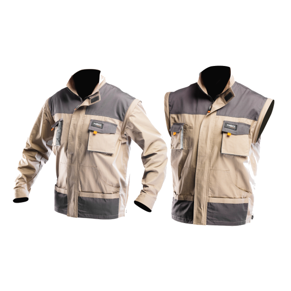 A NEO 2in1 munkaruha pulóver innovatív megoldás, gyorsan átalakítható mellénnyé a karok egyszerű levételével. Kiváló minőségű anyagból készül, a kopásnak kitett helyeken meg van erősítve. A dupla varrások növelik tartósságát, a fényvisszaverő elemek biztosítják viselője láthatóságát. A szolid zsebek nagy terhelést is kibírnak, elférnek benne a munka közben szükséges szerszámok. A lélegző anyag igen nagy előny, nagyon kényelmes viselet. A termék EN ISO 13688:2013 szabvány szerinti kivitelezése és az európai tanúsítványa minőségének garanciája. A NEO márka a professzionális igényeket is kielégíti. 100% pamut, 180 g/m2.