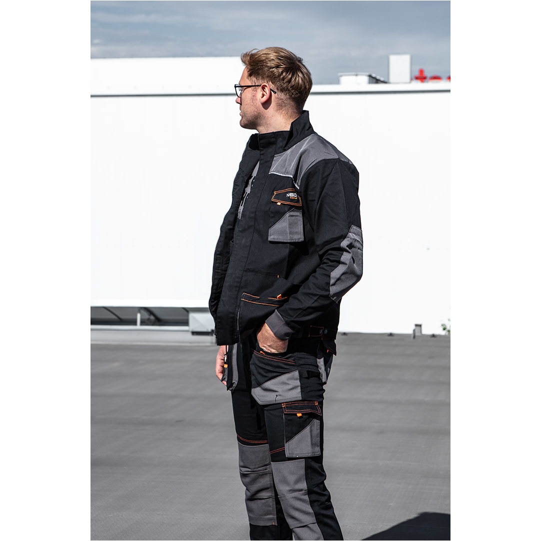Rendkívül praktikus megoldás minden munkához, mind szakmai, mind otthoni munkához. Kiváló minőségű anyagból készült, elasztán hozzáadásával, és a kopásnak leginkább kitett részeket Oxford-szövettel erősítették meg. A fényvisszaverő elemek növelik a felhasználó láthatóságát. A strapabíró zsebek ellenállnak a nagy igénybevételnek, és elfér bennük a munkához szükséges összes szerszám.