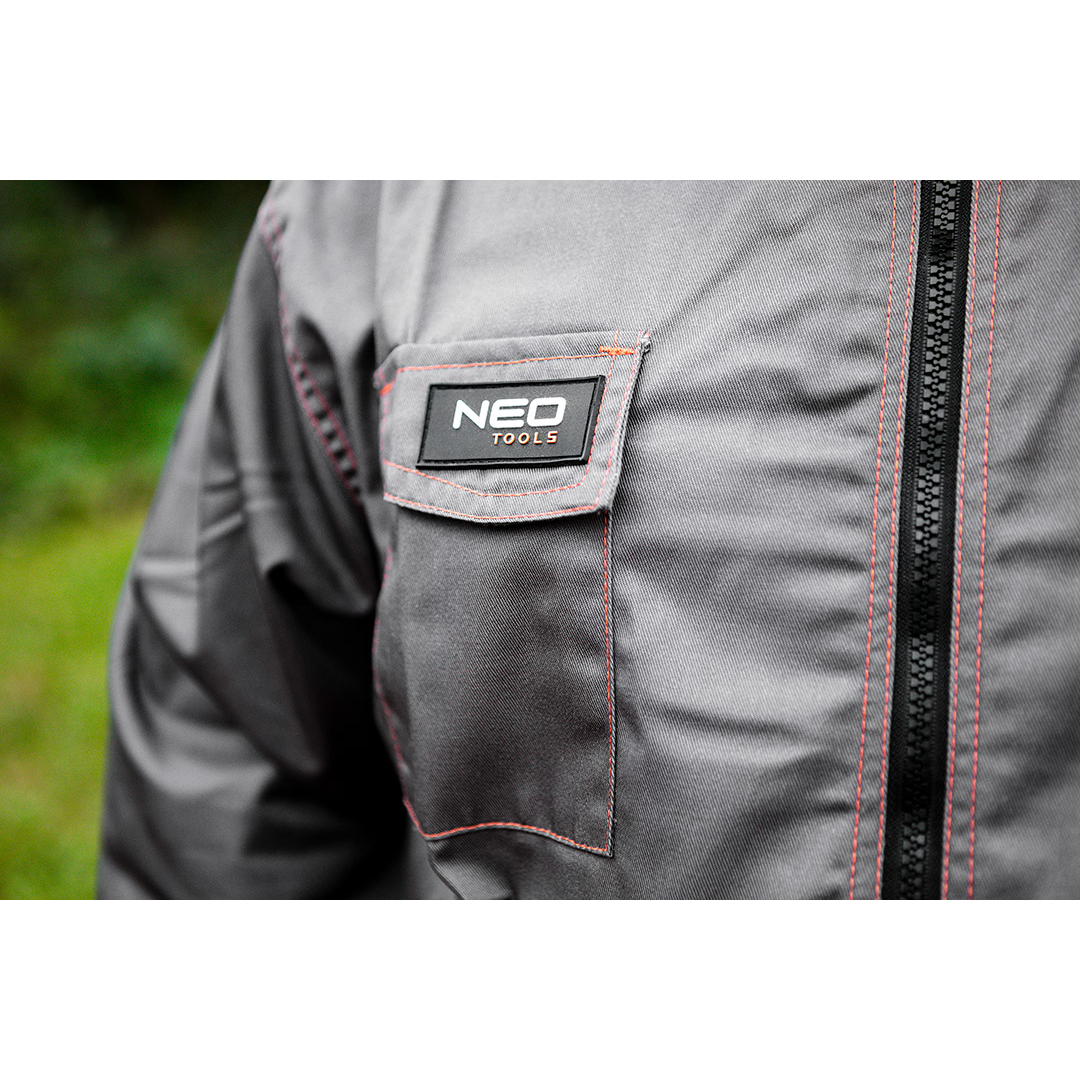 A NEO munkakabát nagyon praktikus megoldás mindenféle munkához, úgy a szakemberek, mint a barkácsolók részére. Strapabíró pamut-poliészter keverékből készül. Az integrált, szabályozható rugalmas mandzsetta az alsó szegélynél és a karok végén jó fekvést biztosít az anyagnak, maximálisan komfortossá téve a viseletét. A többfunkciós zsebek nagy terhelést is kibírnak, elférnek benne a munka közben szükséges szerszámok. A termék EN ISO 13688:2013 szabványnak megfelel és az európai CE tanúsítványa minőségének garanciája. A NEO márka a professzionális igényeket is kielégíti.